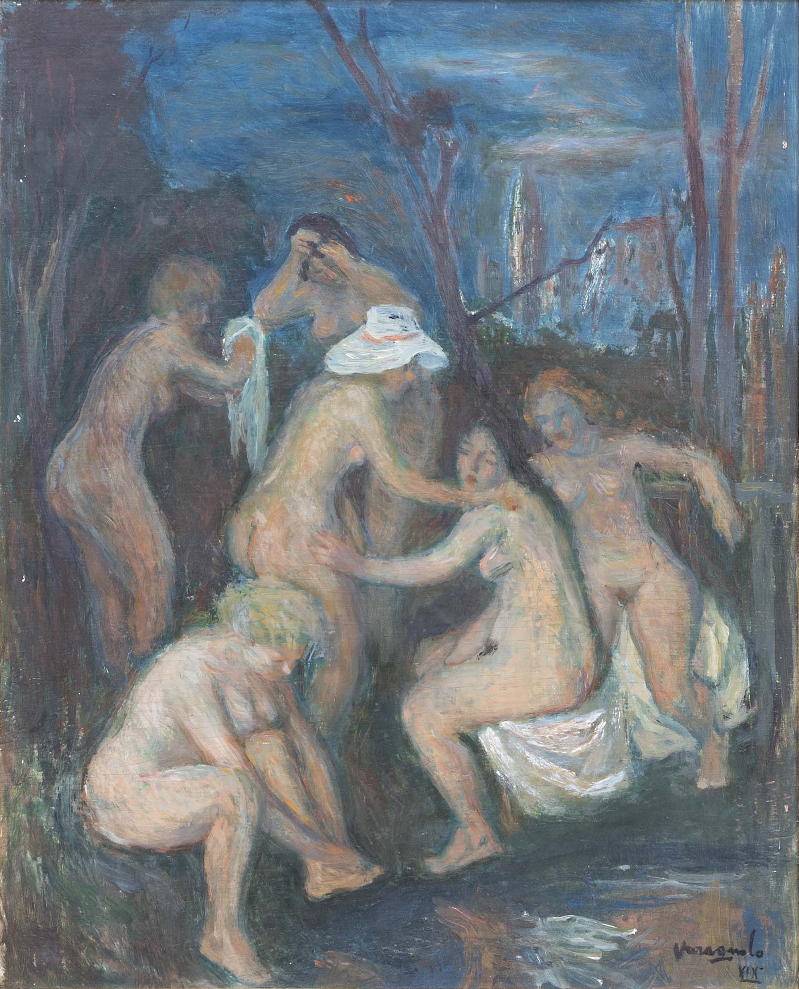 MARIO VARAGNOLO (Venezia, 1901 - 1971) Bagnanti 1941 olio su tavola cm. 40x50...