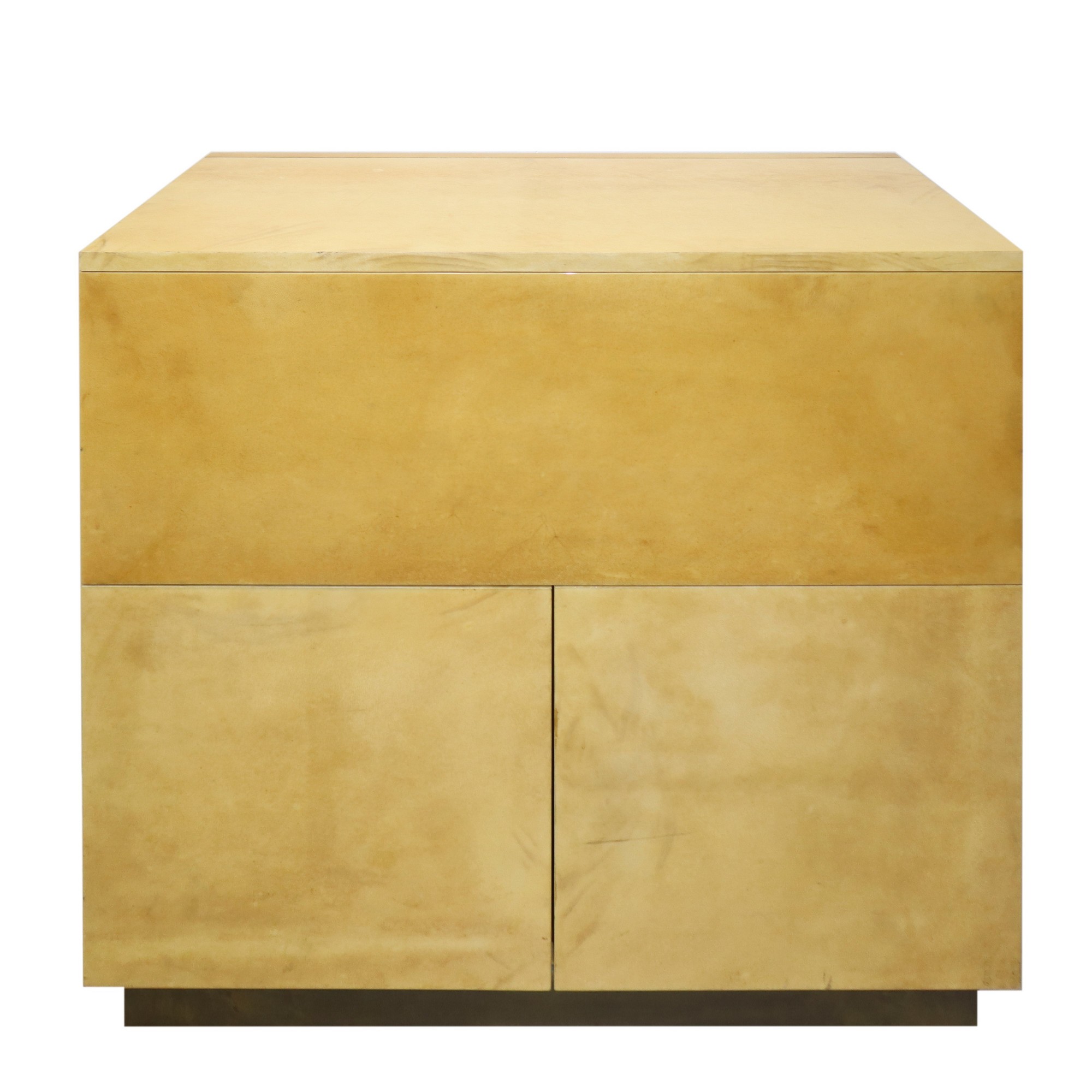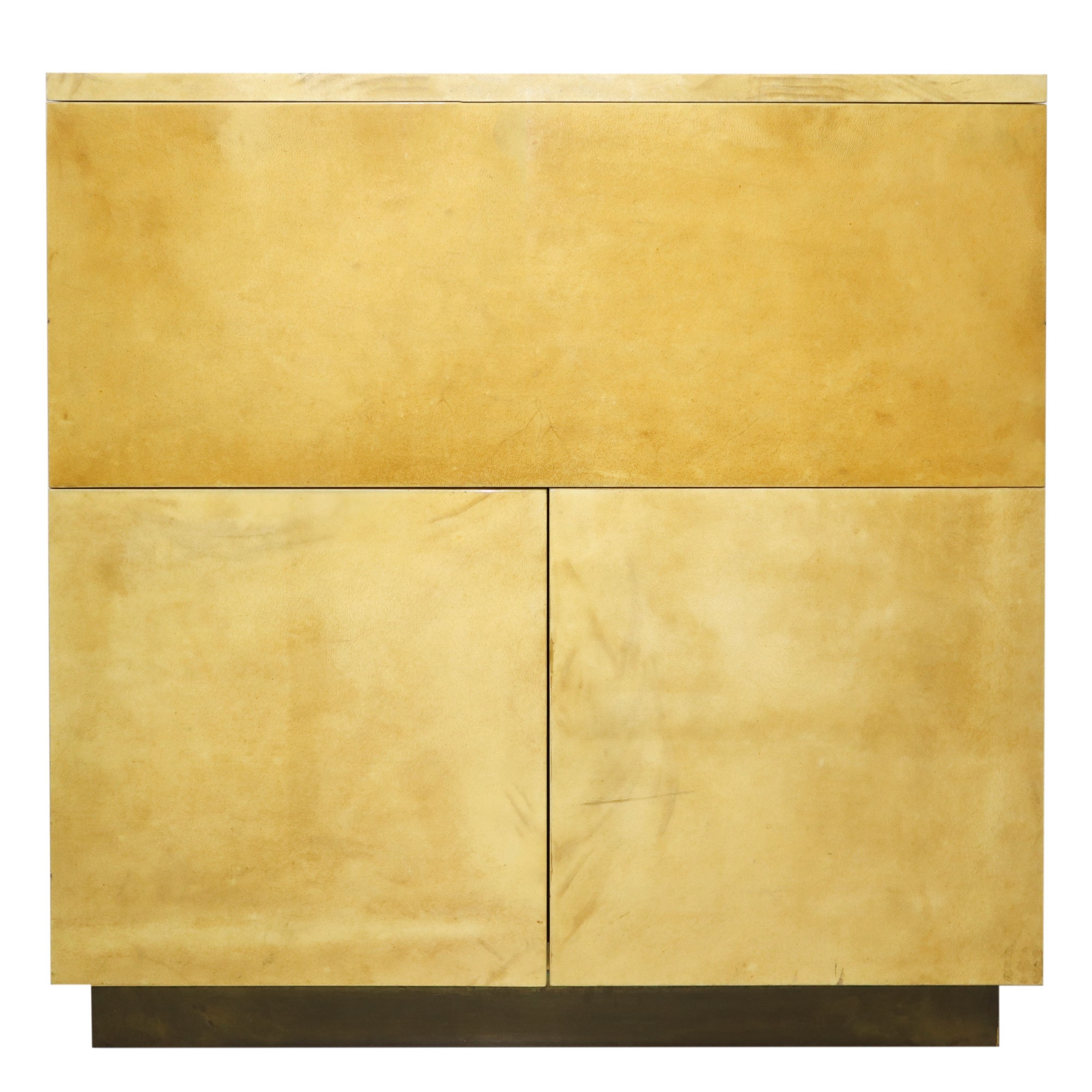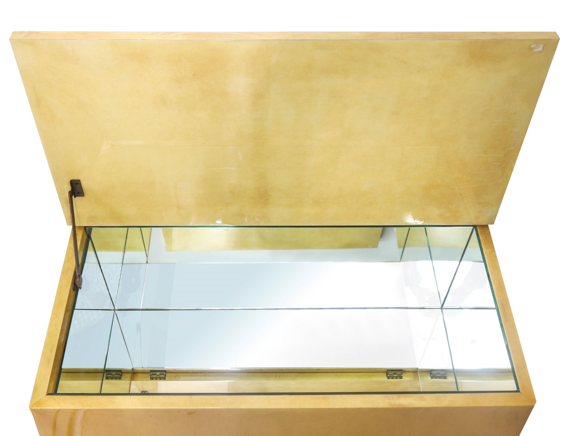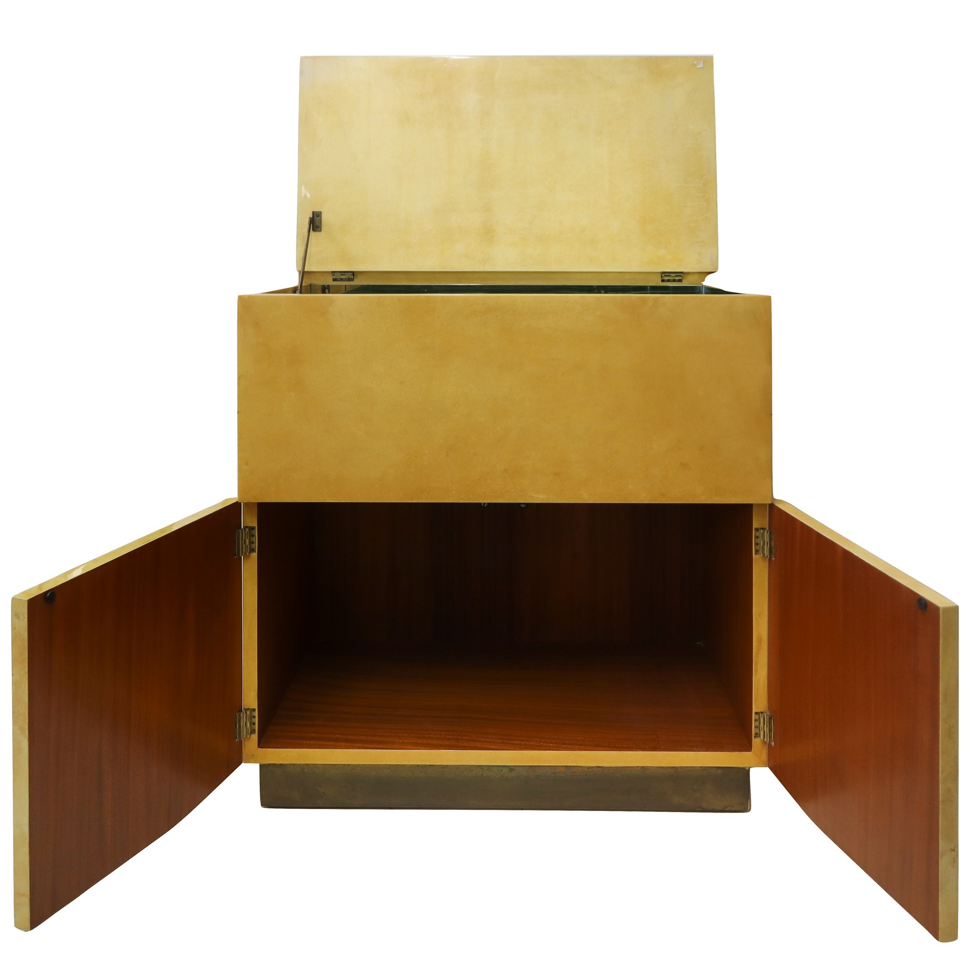 Aldo Tura (1909-1963) - Mobile bar in pergamena H 91 x L 90 x P 45 Apertura a ribalta con interno specchiata, parte inferiore con due ante