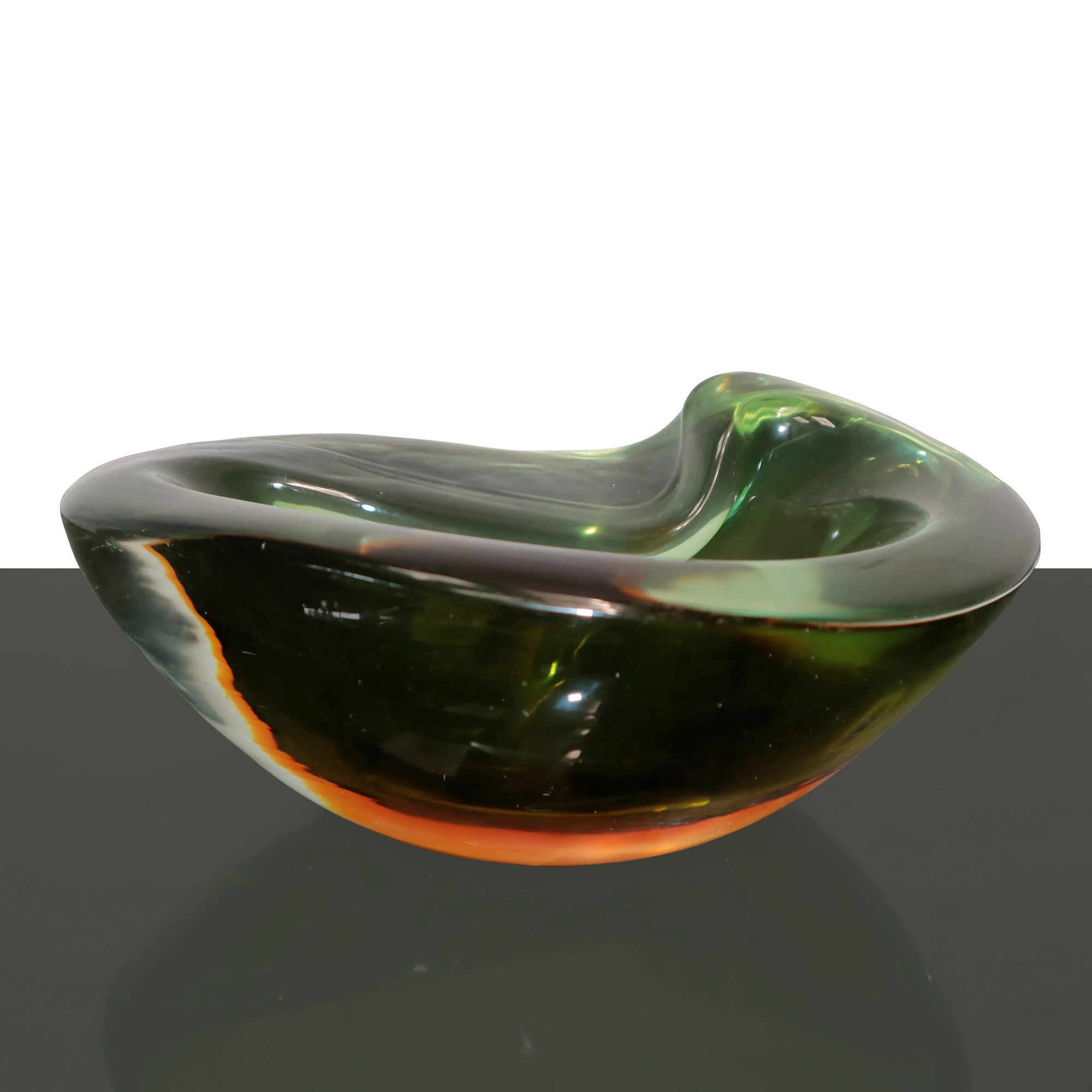 Posacenere in vetro pesante nei toni del verde