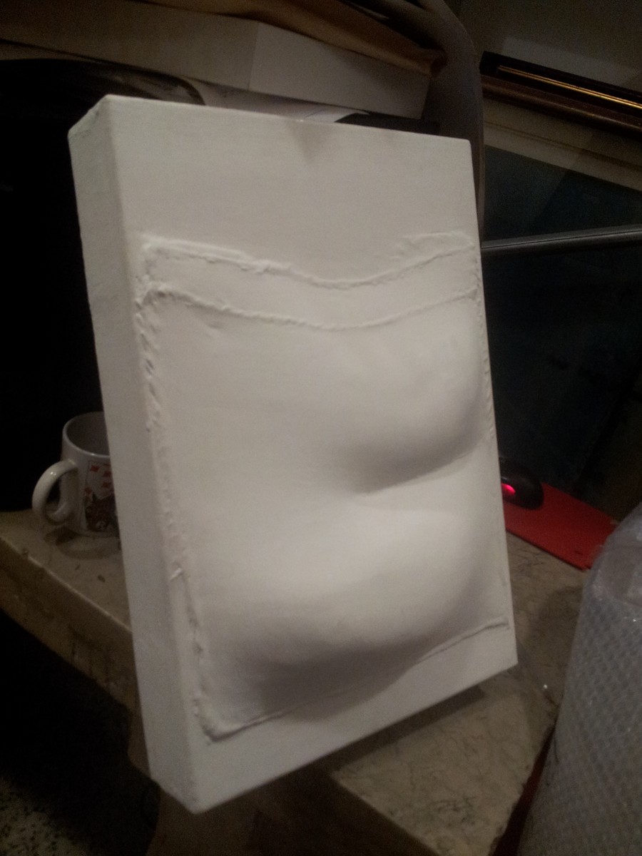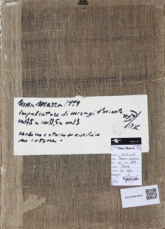 MARRA MAX (n. 1950) Impalcature di miraggio d'oriente. 1999. Caolino stucco e acrilico su cotone. Cm 31,50 x 45,00 x 13,00. Al retro titolo, firma e anno su cartiglio della Galleria Transit Bergamo.
