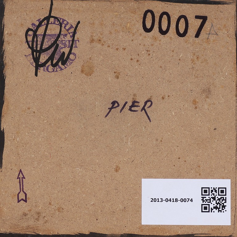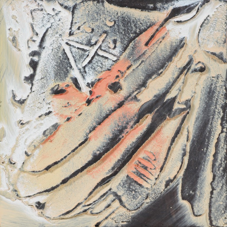 TOFFOLETTI PIER (n. 1957) Senza titolo. Tecnica mista su legno. Cm 19,00 x 19,00. Al retro firmato Pier, timbro della Galleria Transit Bergamo.