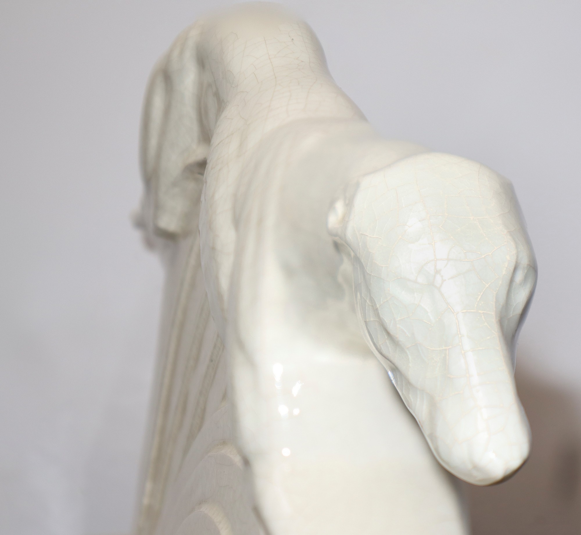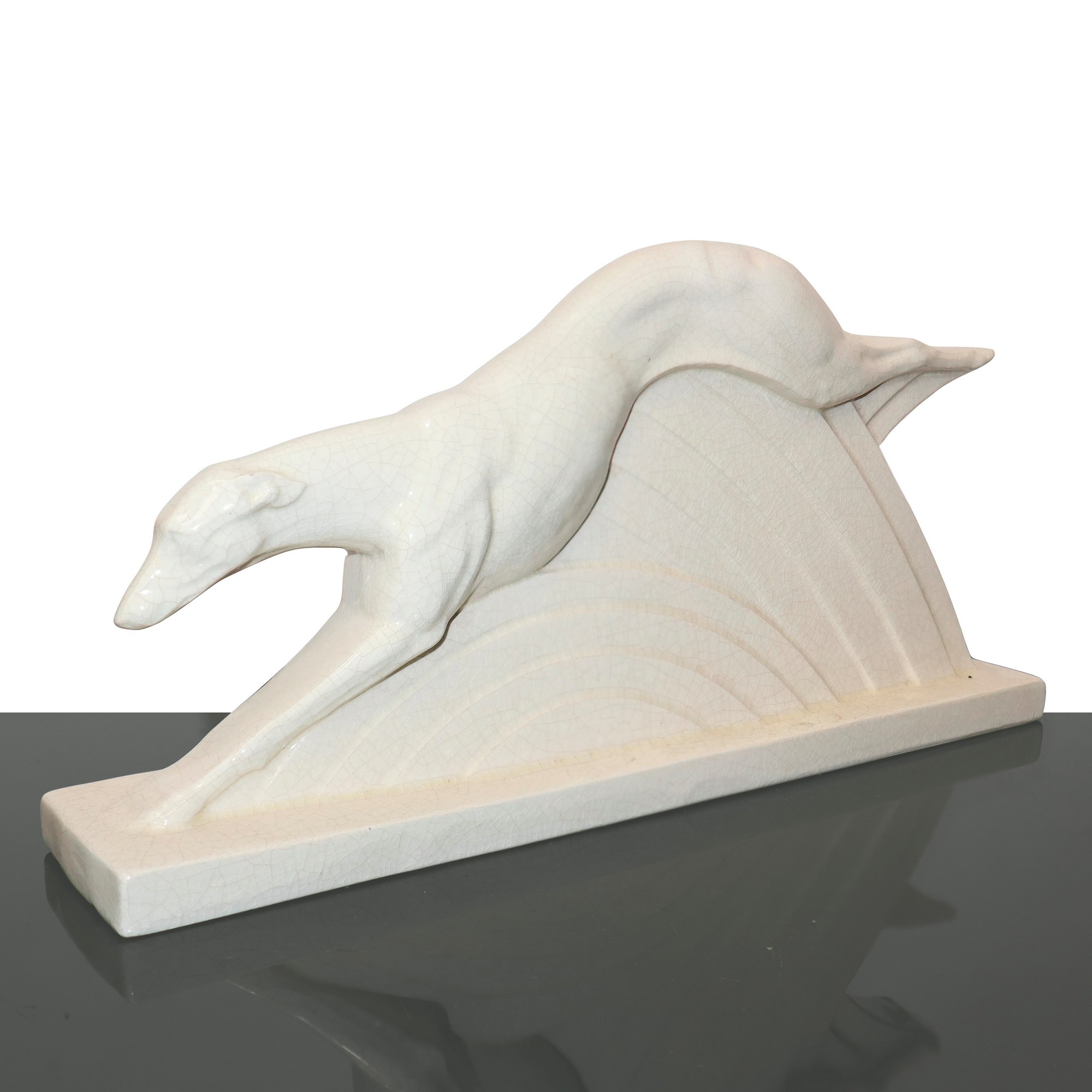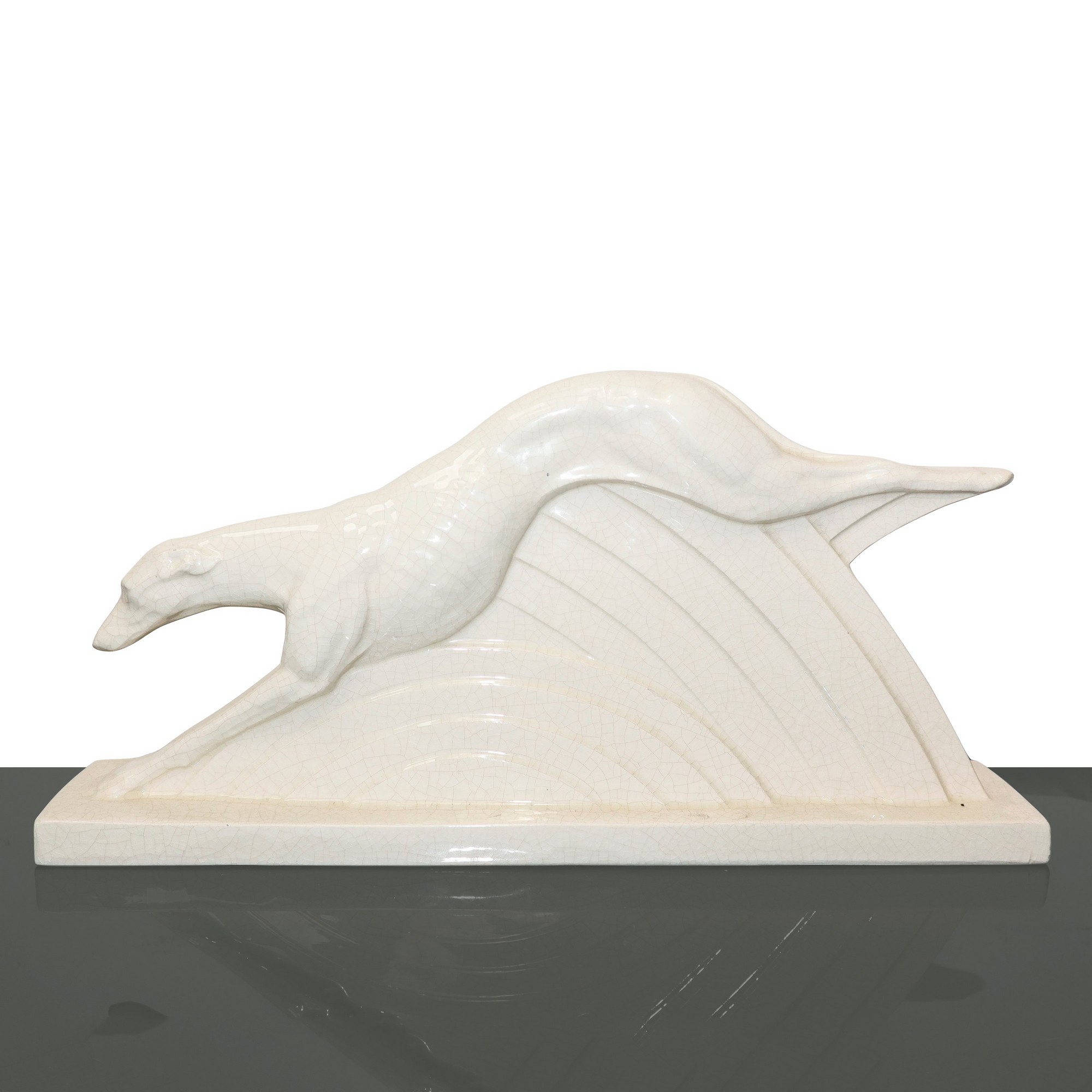 Lemanceau Charles (1905-1980) - Levriero in corsa, scultura in maiolica invetriata, 1930, Art Deco