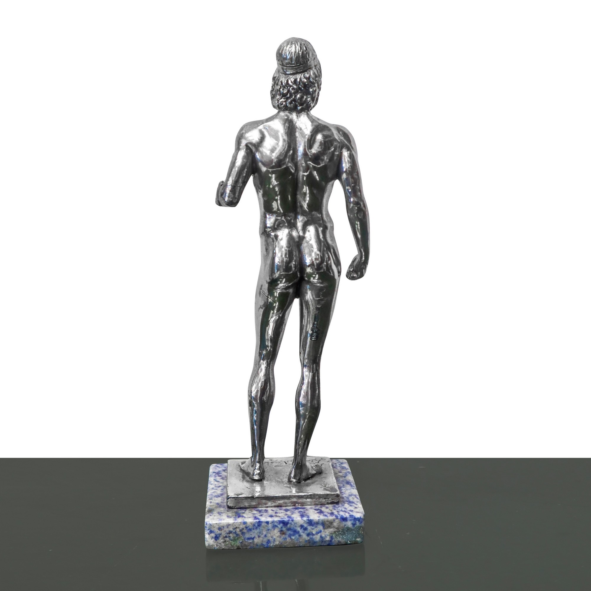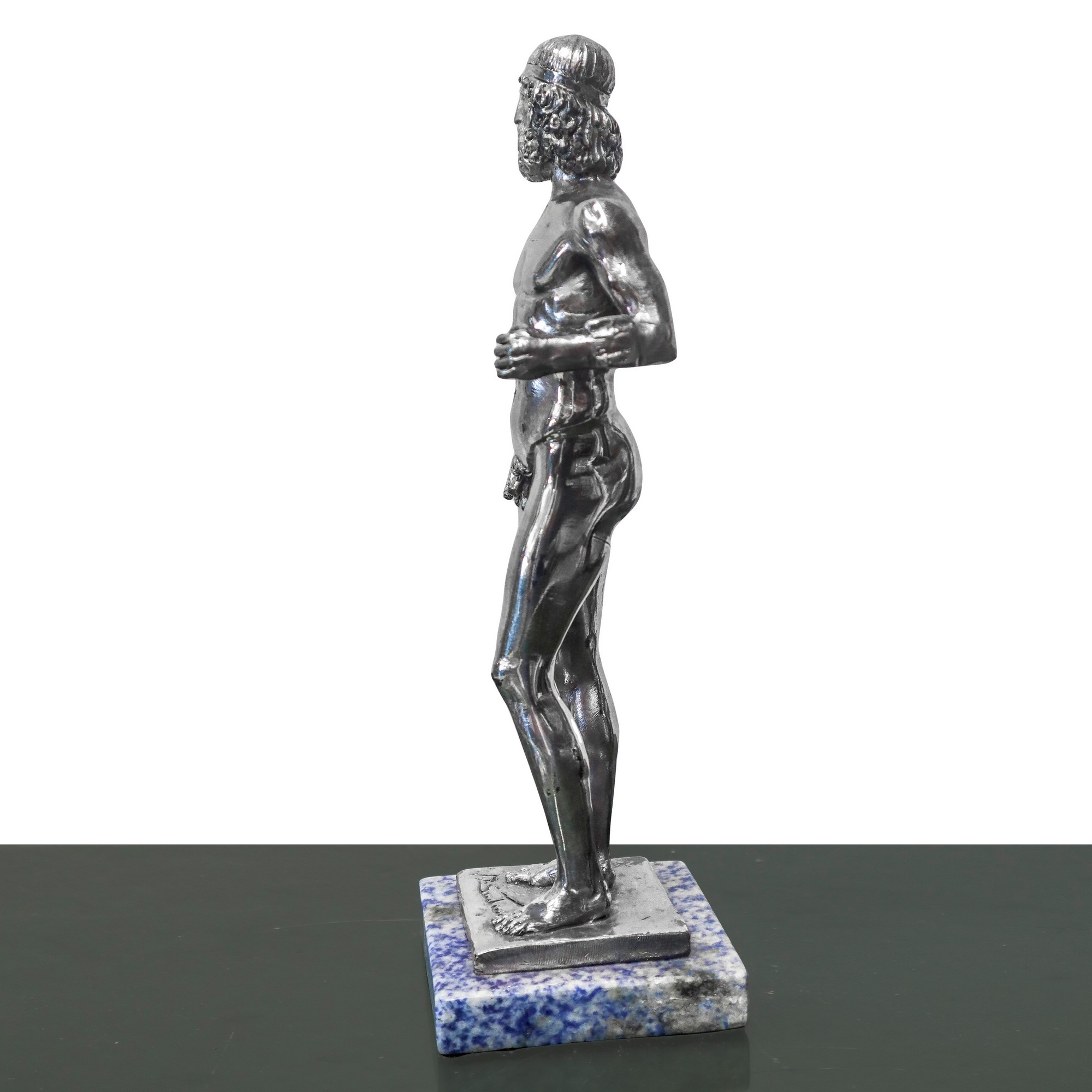 Due figure affiguranti i bronzi di Riace, in bagno d'argento, scultore A. Santini., 20° secolo H cm 27 Base in marmo
