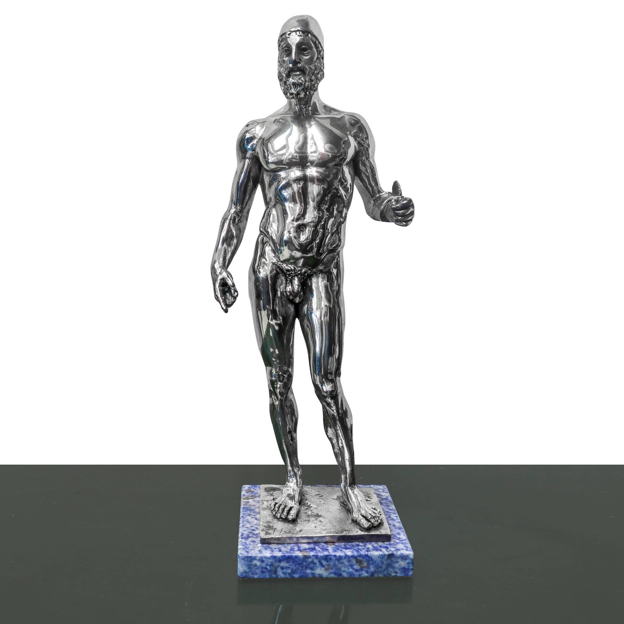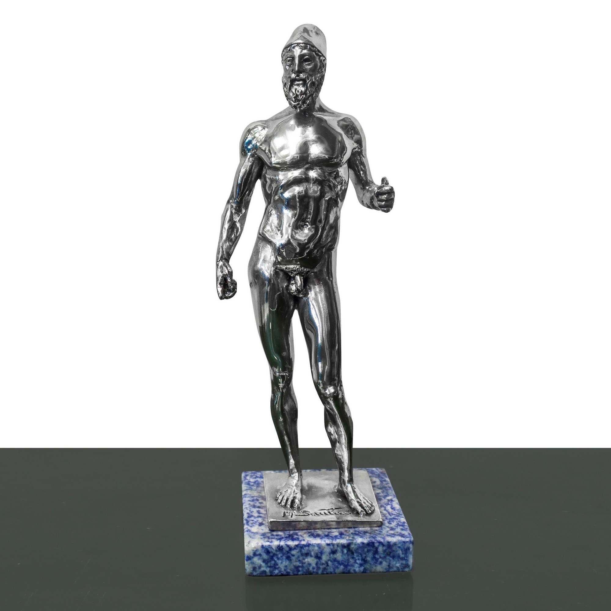 Bronzo di riace, rivestito in bagno d'argento H cm 38 Con base in marmo