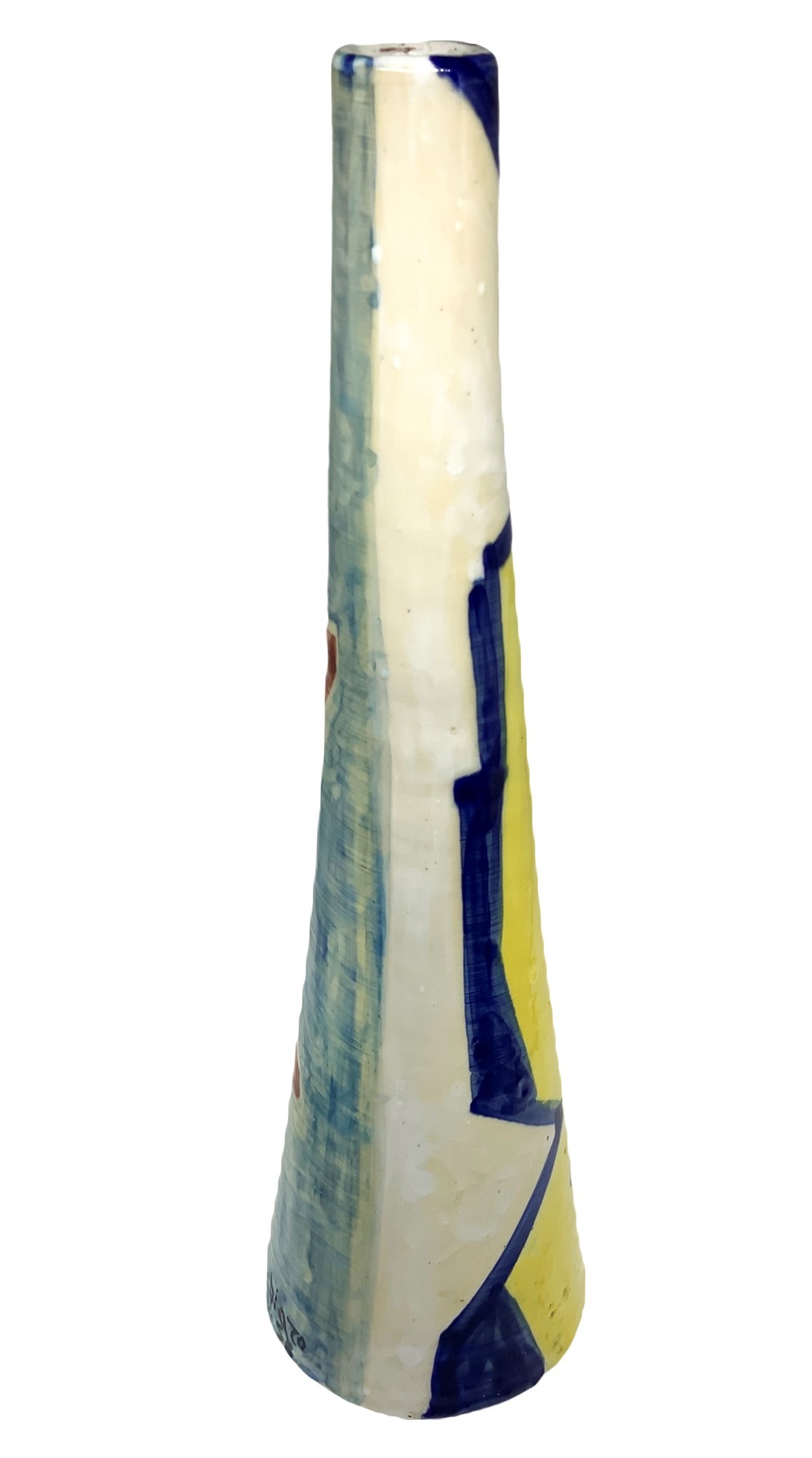 Vaso in maiolica , 20° secolo (1958) H cm 33 Maiolica policroma Vaso firmato Finocchiaro e datato 31.12.58.
