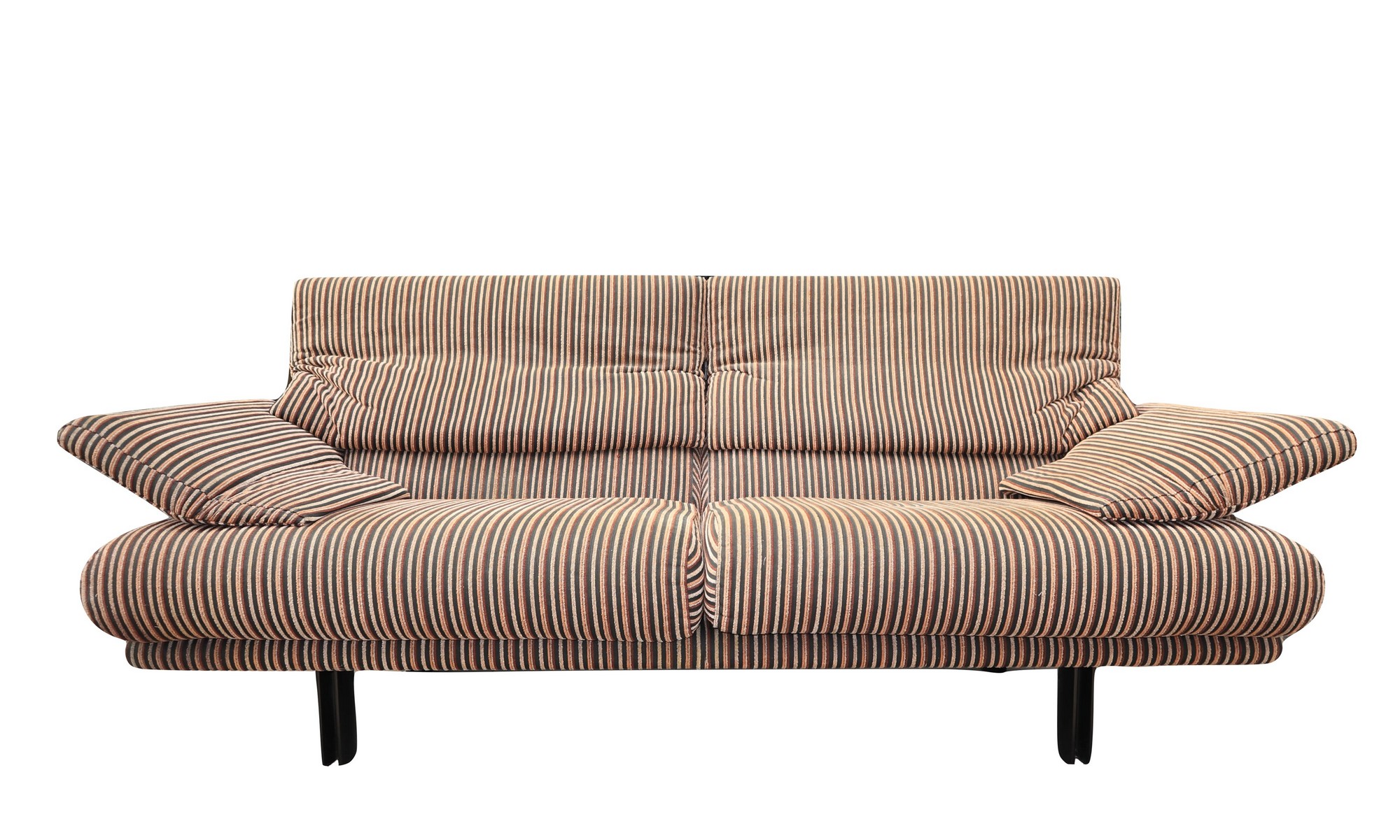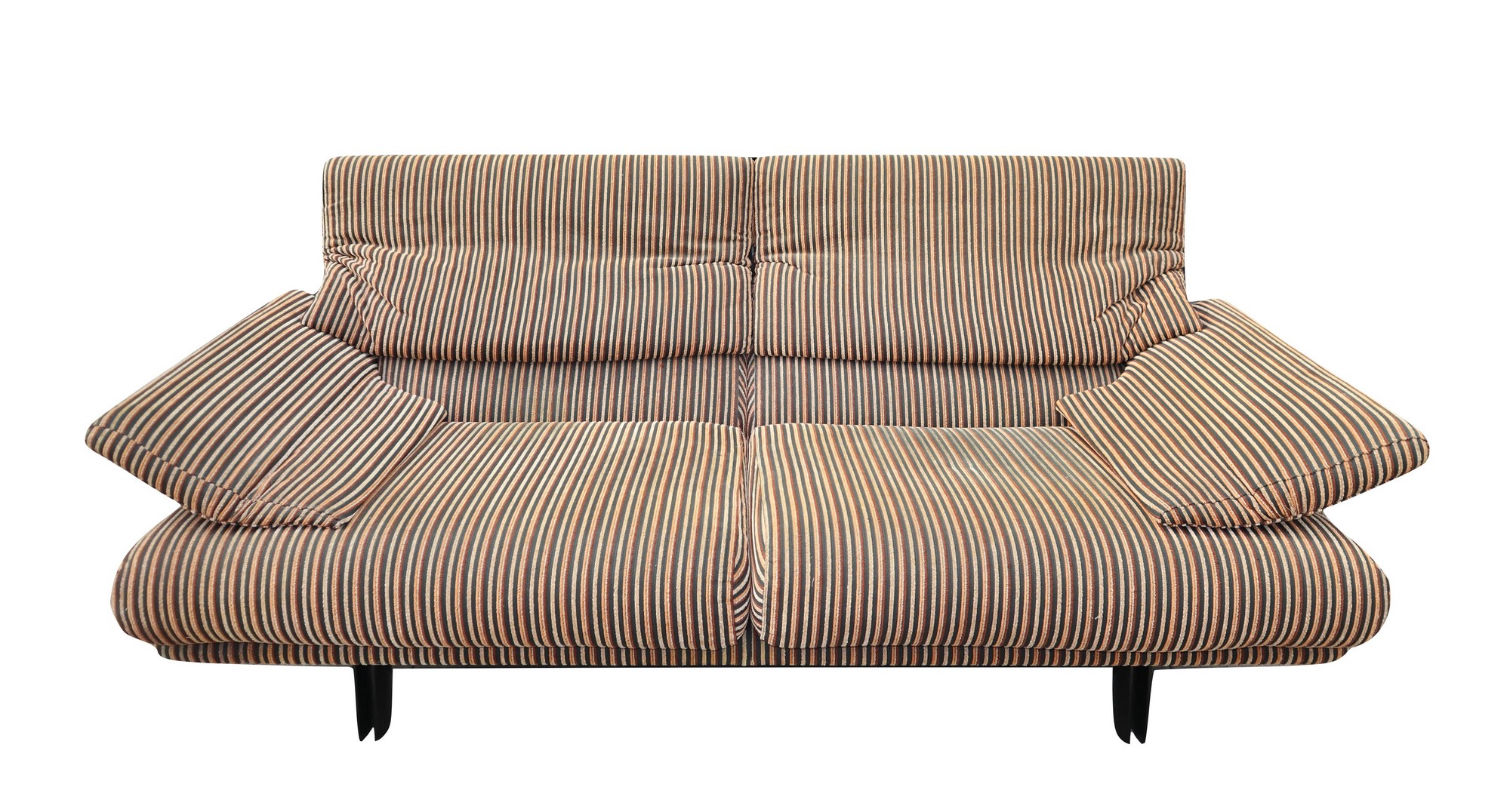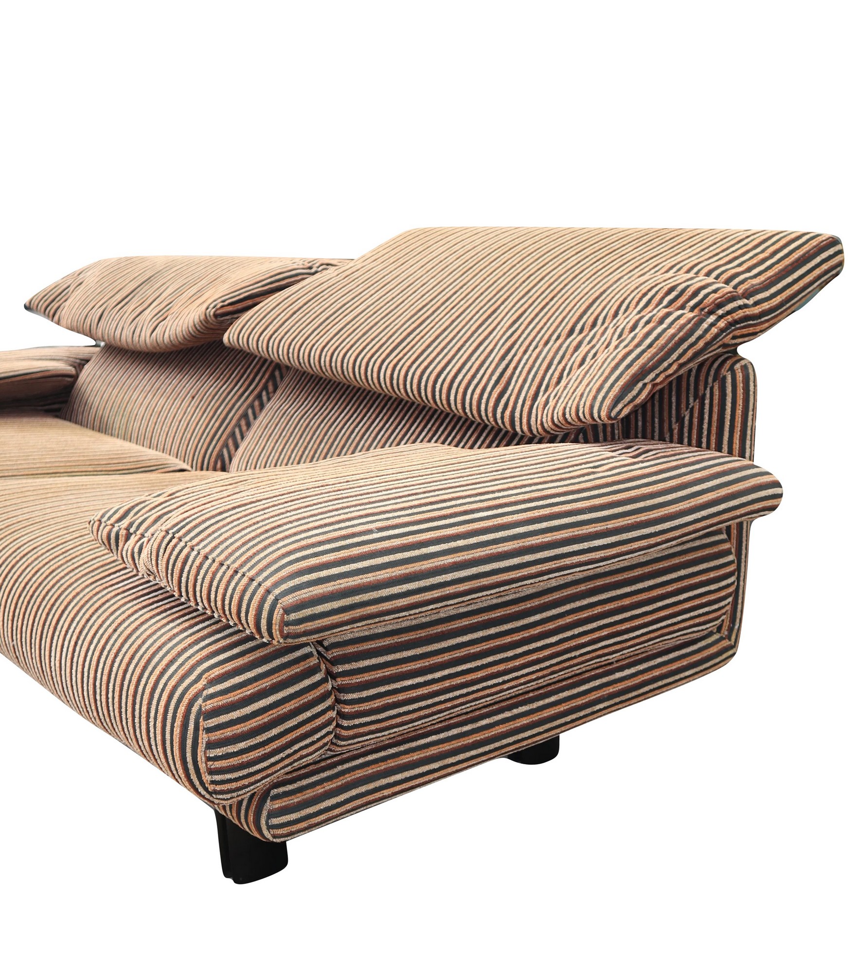 B&B Italia - Divano con stuttura in metallo modello Alanda h cm 88x210x80 MaxAlto, disegno Paolo Piva. Rivestimento in tessuto a coste policrome interamente sfoderabile. Bracciolo e poggia testa reclinabili. Segni d'uso e macchie.