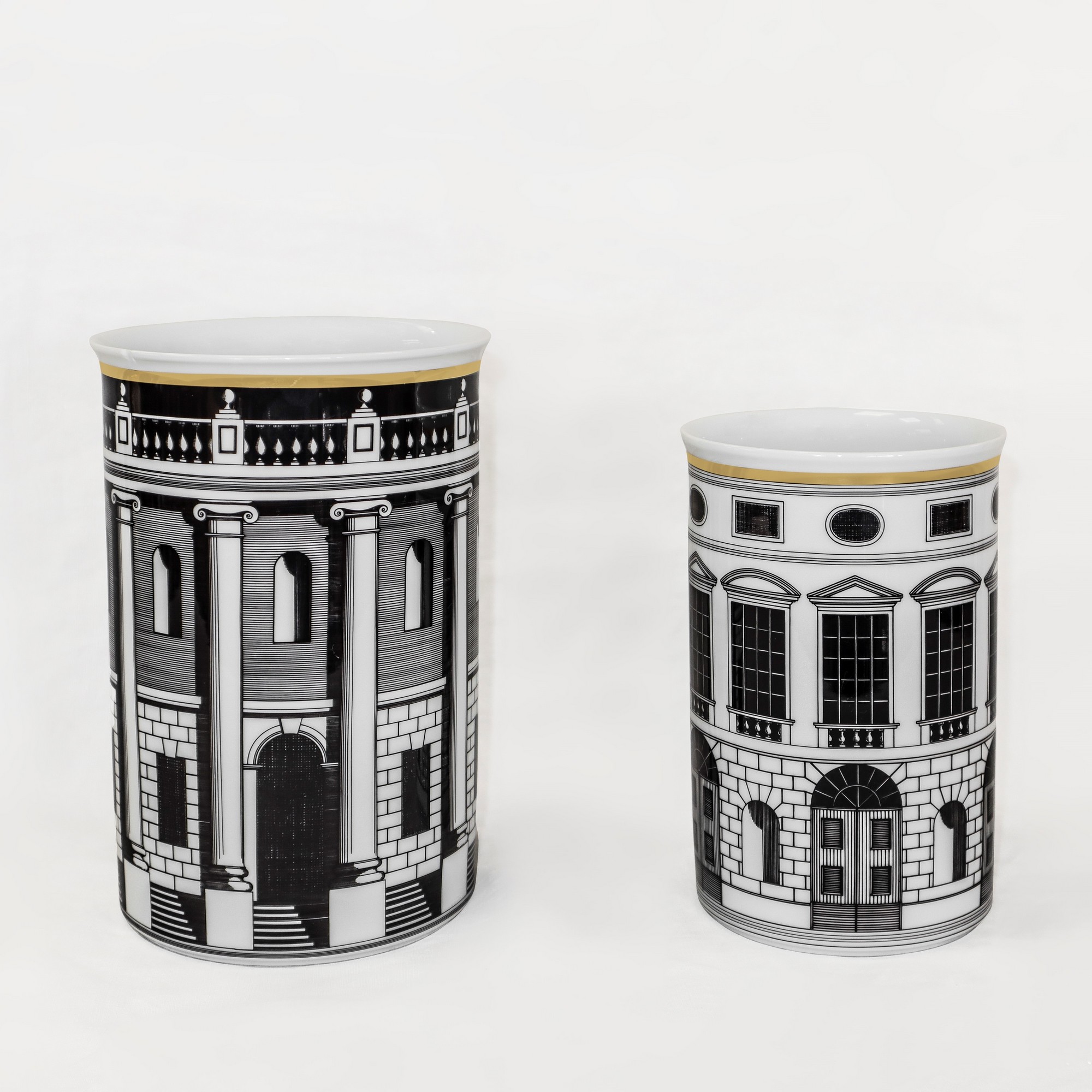 Lot 158 | Piero Fornasetti - 2 Vasi in porcellana, decoro Palladiana. Piero Fornasetti per Rosenthal