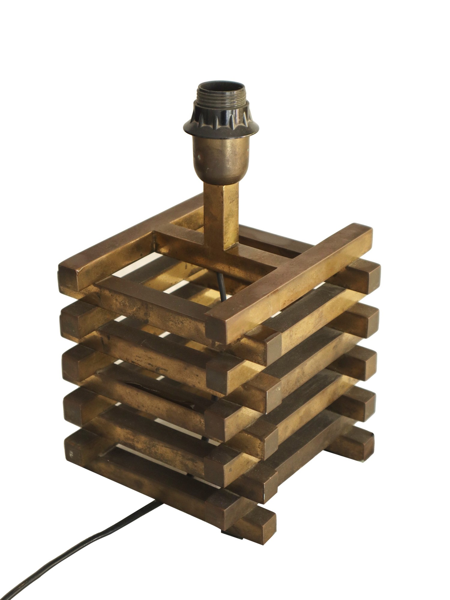 Romeo Rega - Lampada da tavolo con struttura in ottone listellare cm 37 x cm 15 x cm 15 Finitura zapponata. Presenti tracce di ossido. Finitura zapponata. Presenti tracce di ossido.