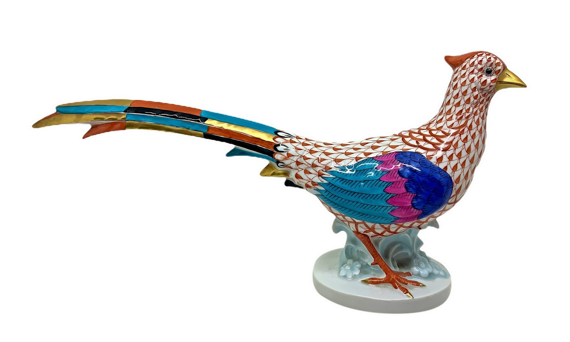 Fagiano H 16,5 x 32,5 cm Scultura in porcellana policroma raffigurante Sulla base marchio Herend Hvngary Hand painted.