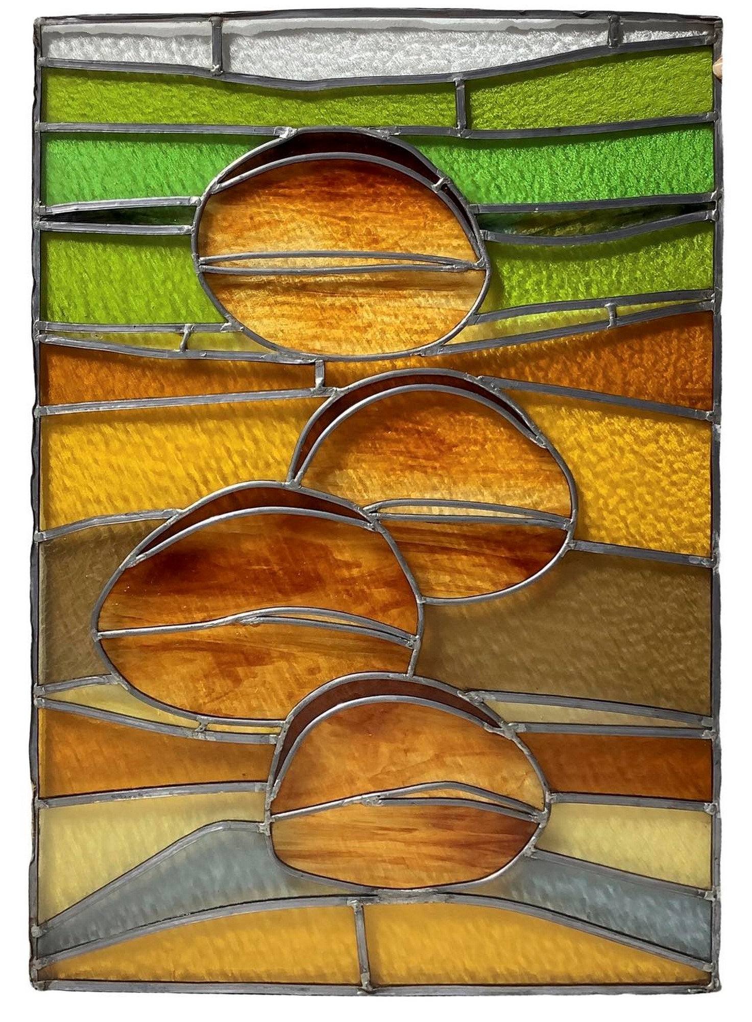 Domenico Girbino (Bronte 1935-Catania 2013) - Vetrata a piombo con vetri cattedrale, 20° secolo cm 91x67