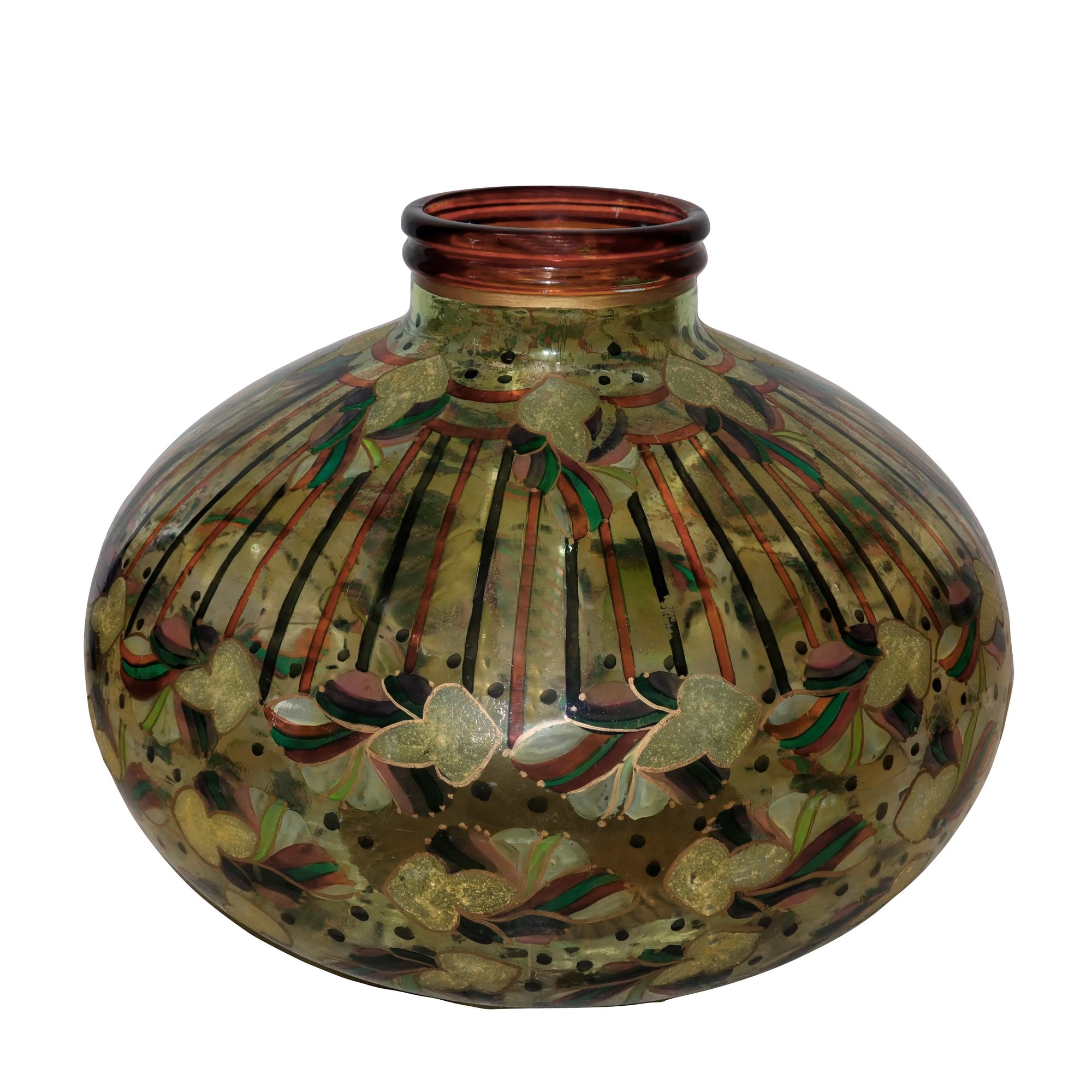 Grande boccia in vetro dipinto a mano con motivi floreali