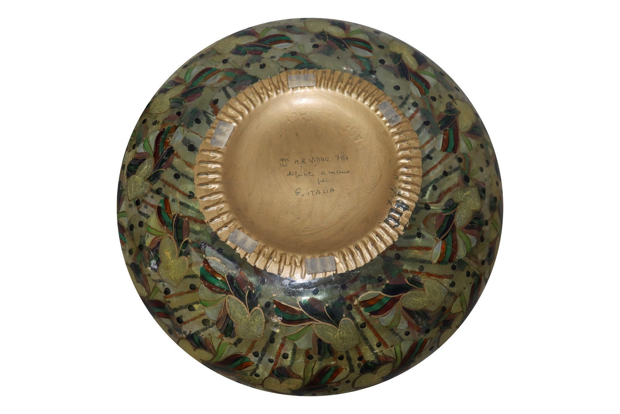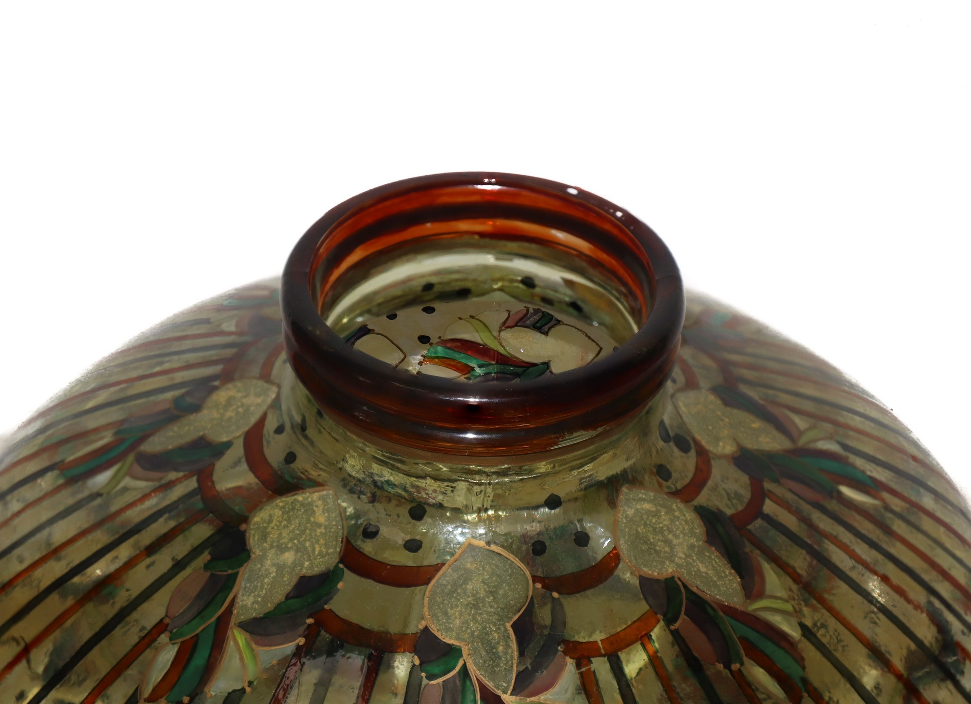 Grande boccia in vetro dipinto a mano con motivi floreali H 33 x diametro 45 Firmato MR Didau per G.ItaliaFirmato MR Didau per G.Italia