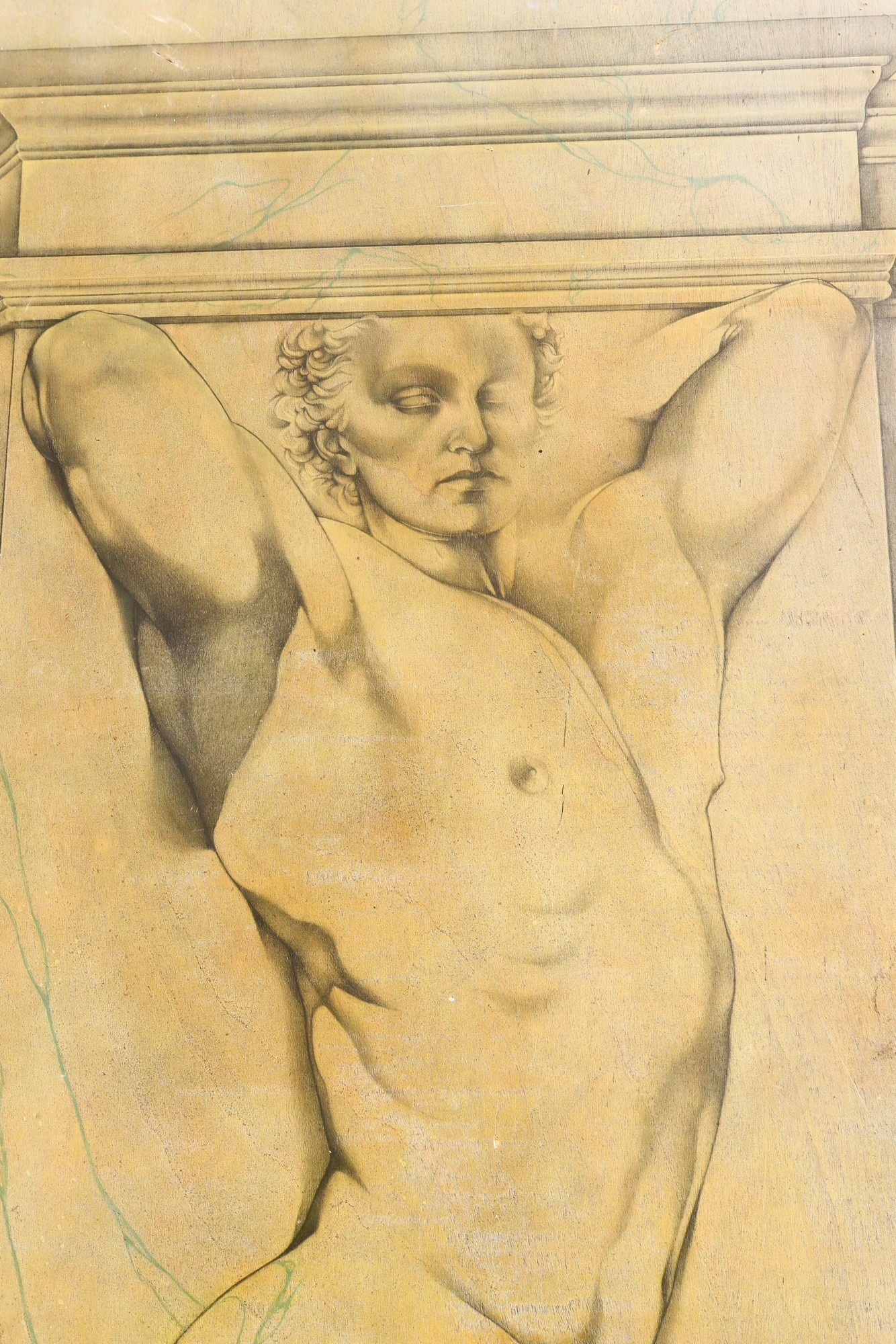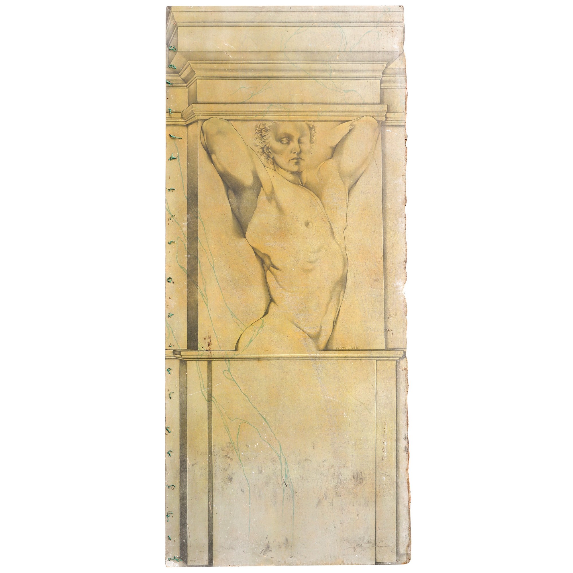 Grande Pannello in legno con raffigurazione di nudo di uomo