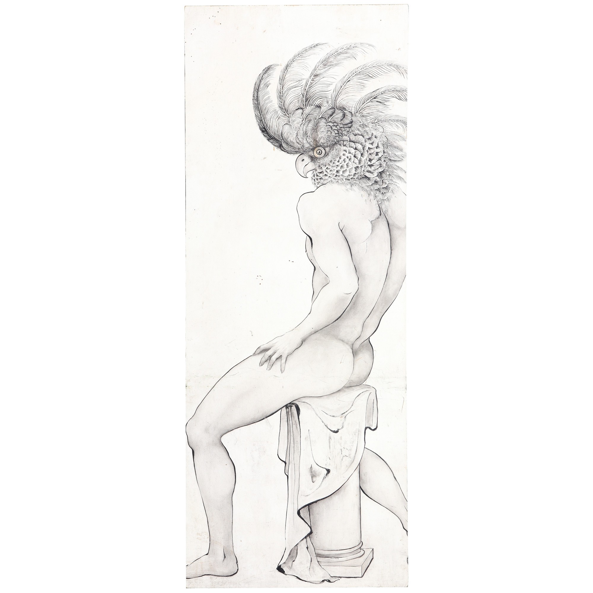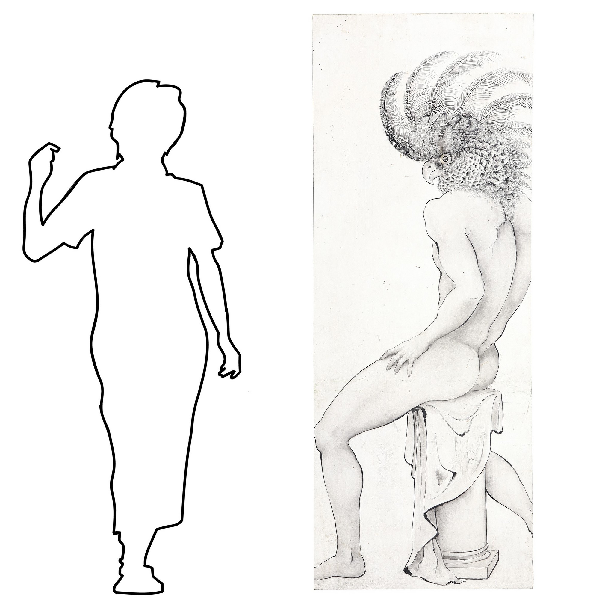 Nudo di Uomo / pappagallo H 185 x L 85 cm tecnica mista olio e matita