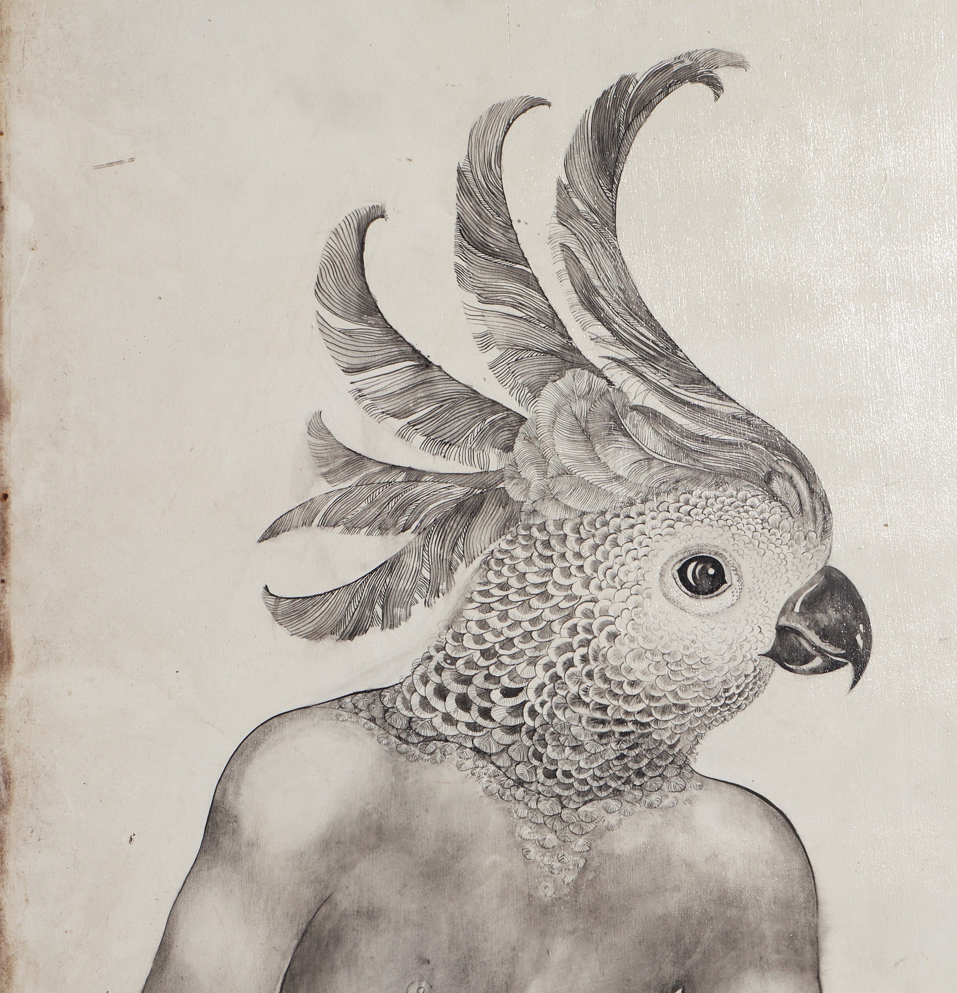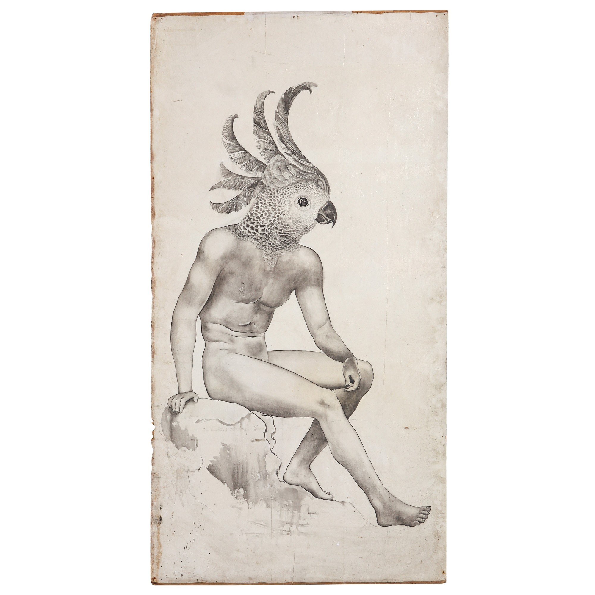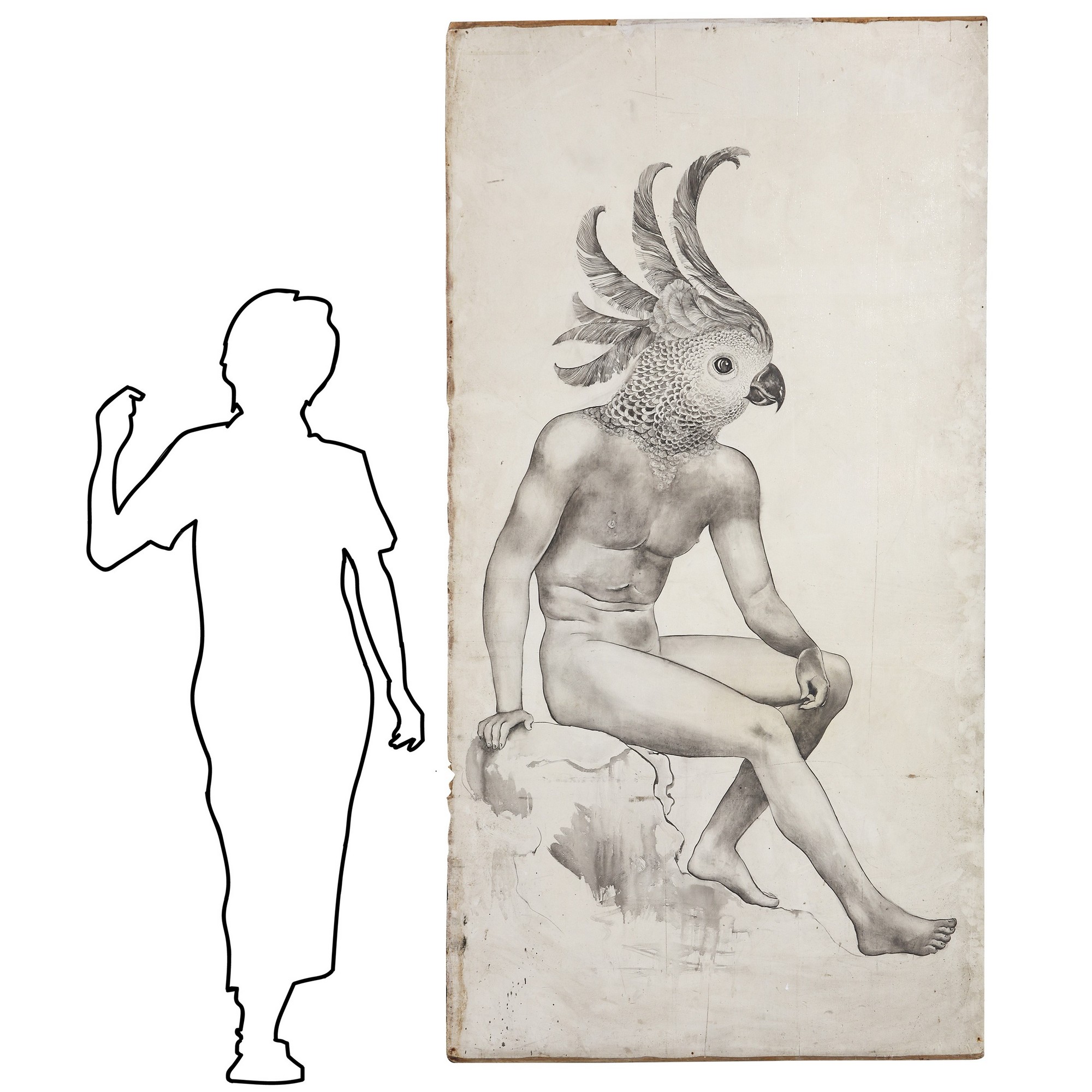 Nudo di uomo / pappagallo H 235 x 125 cm tecnica mista