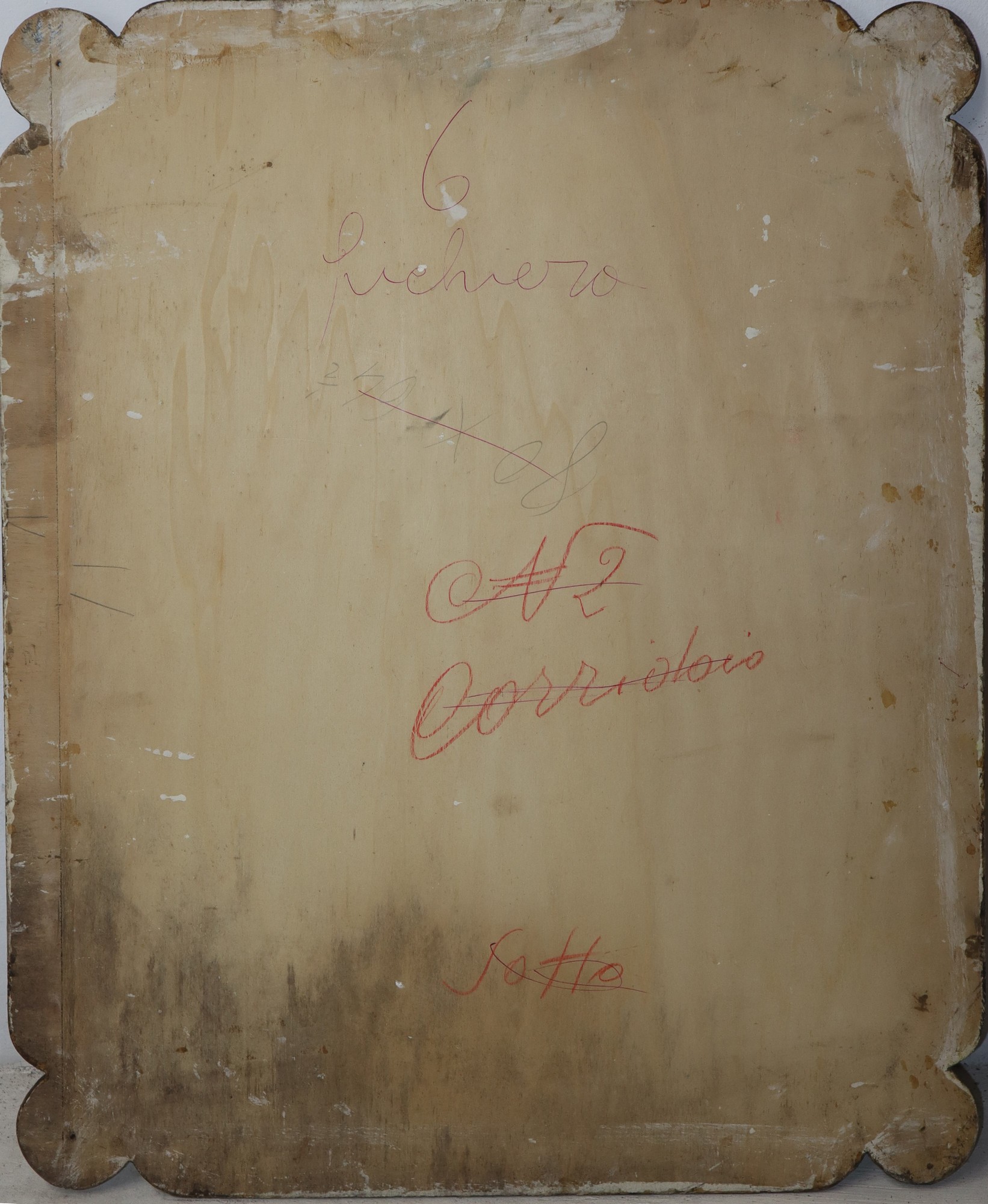 G. Belfiore - Panello decorativo raffigurante Ingranaggi e croce nei toni dell'ocra H cm 69 x L cm 84 Tecnica mista su tavola in legno