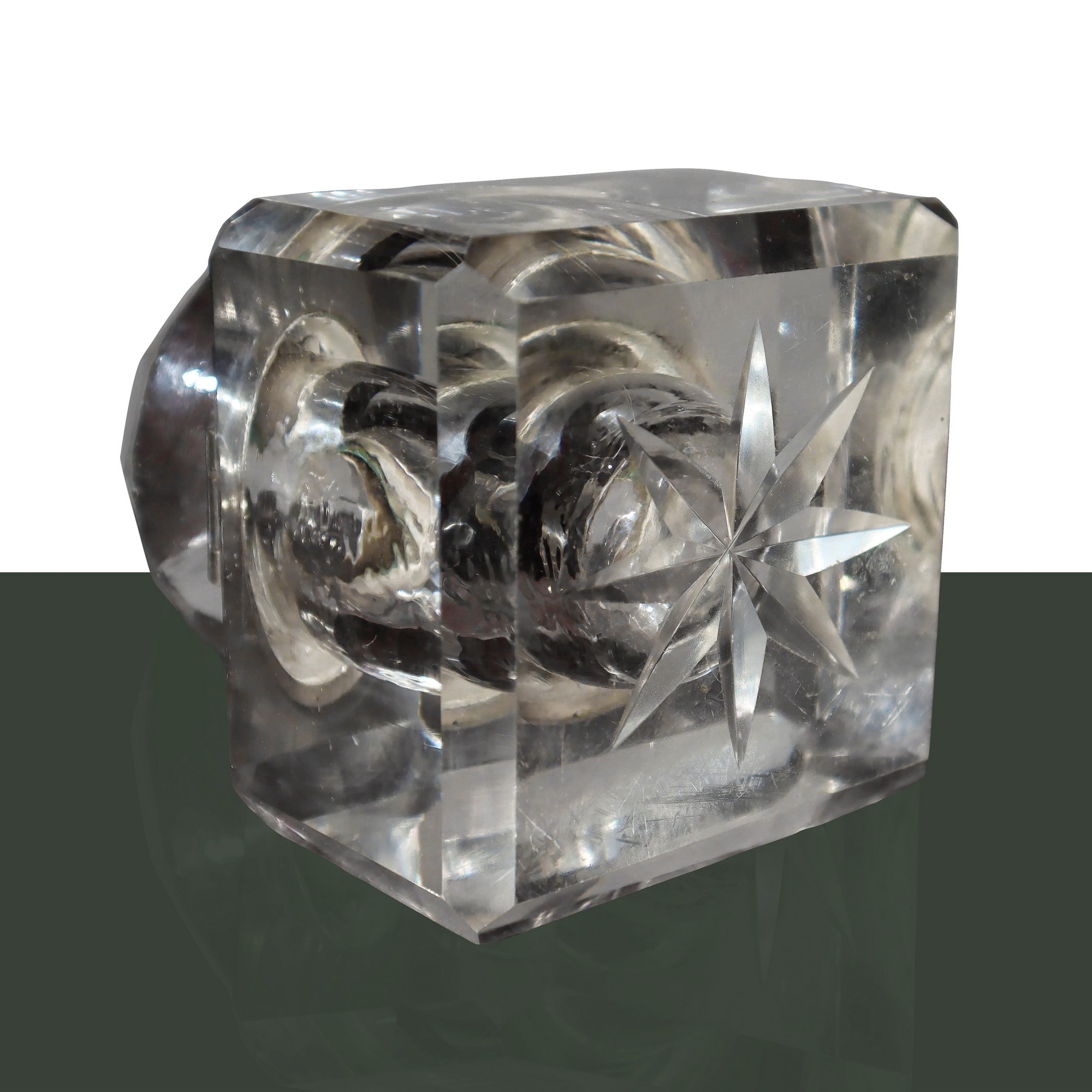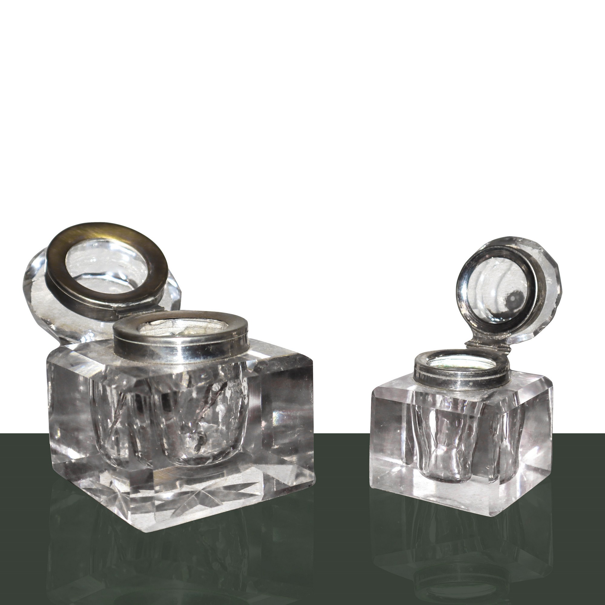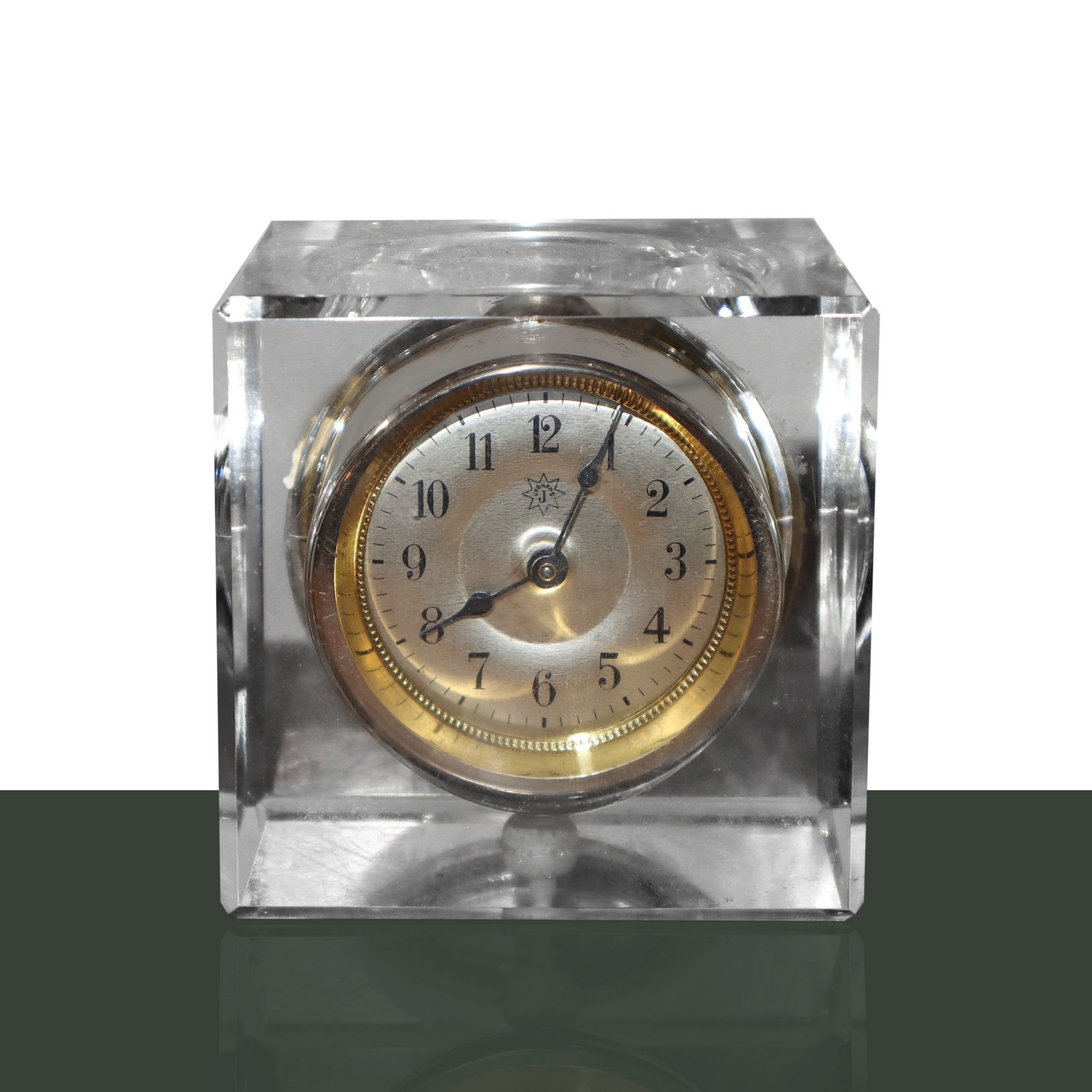 Junghans - Coppia di calamai e orologio in cristallo. H cm 11.8 x 12 x 12