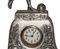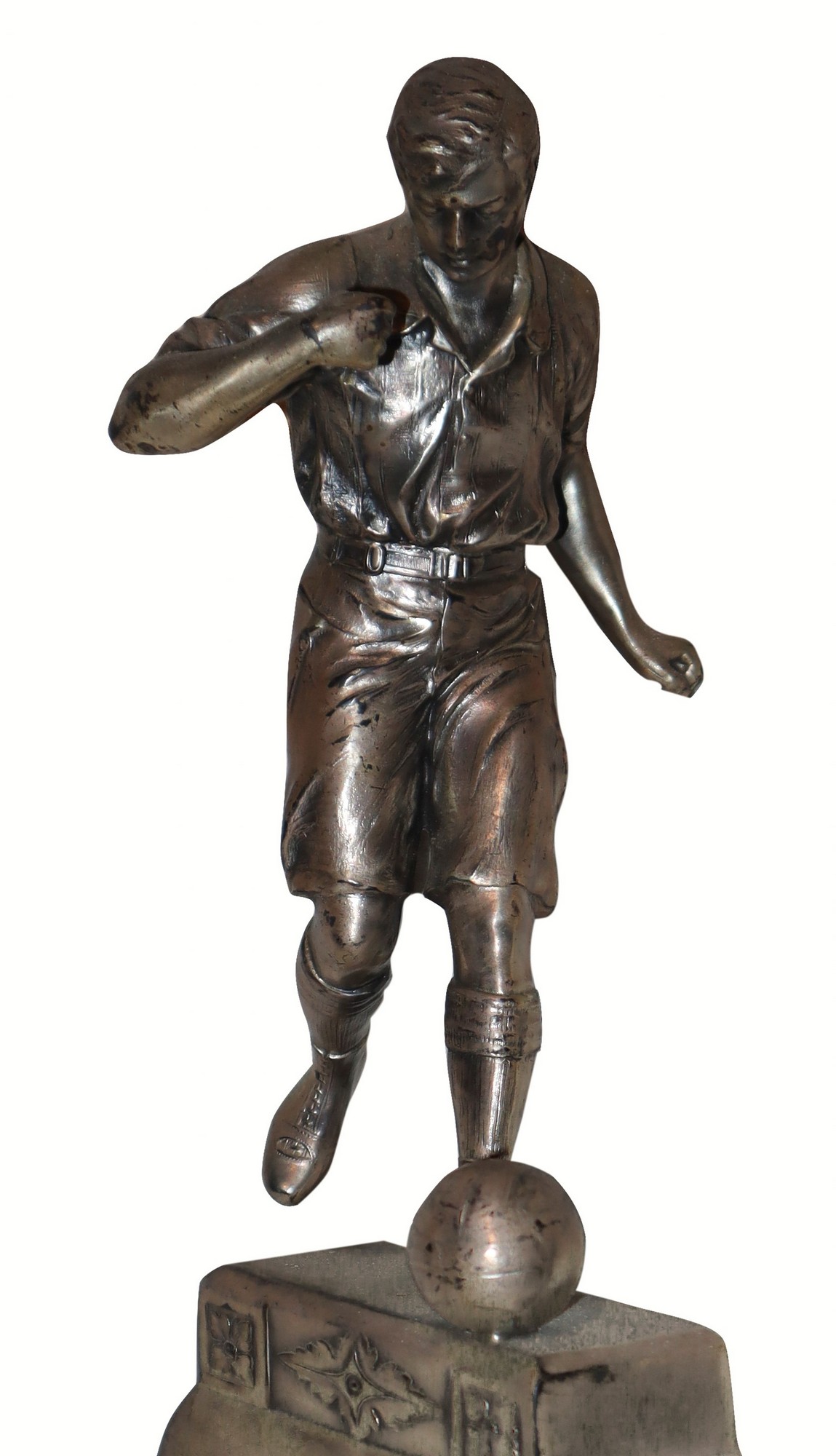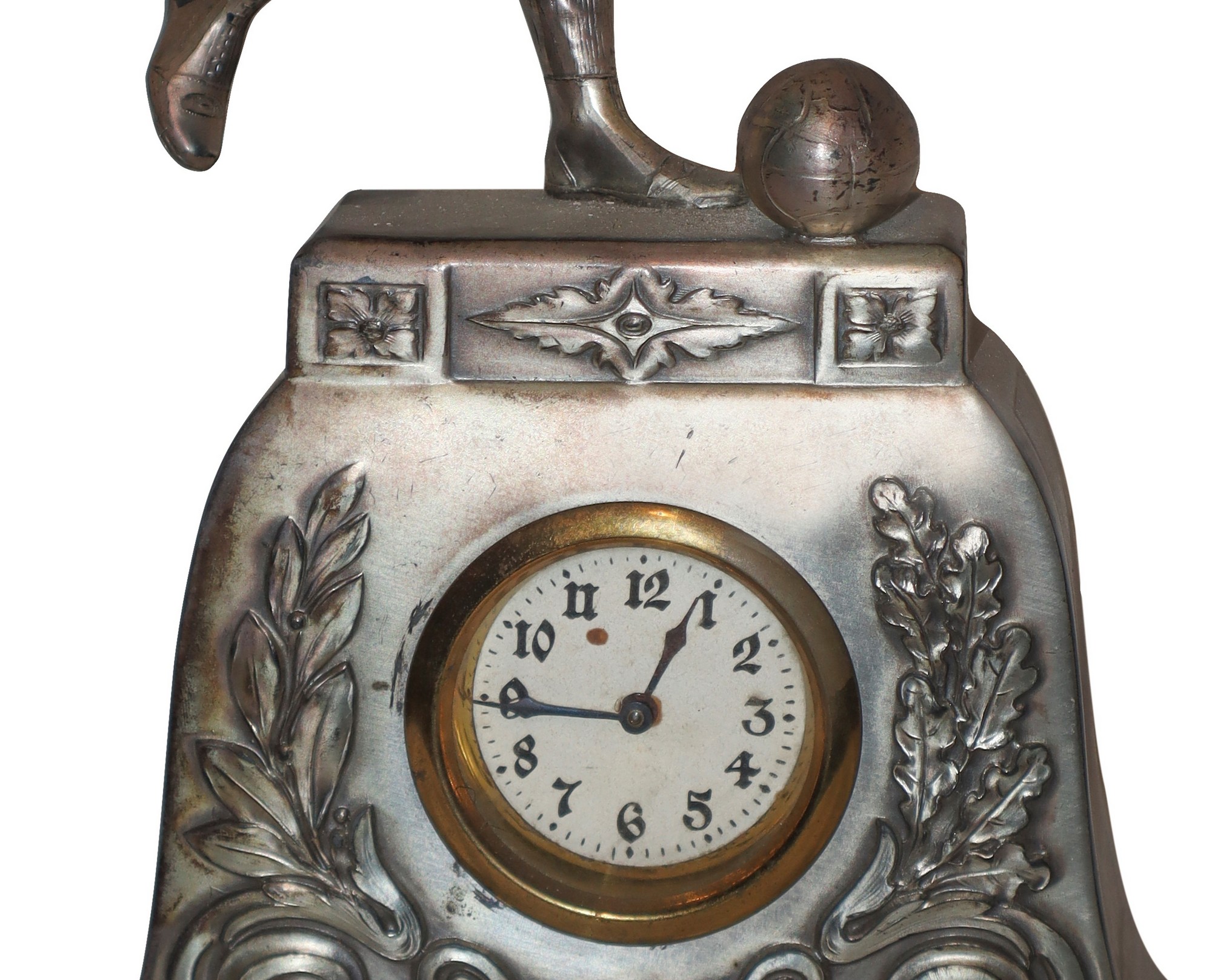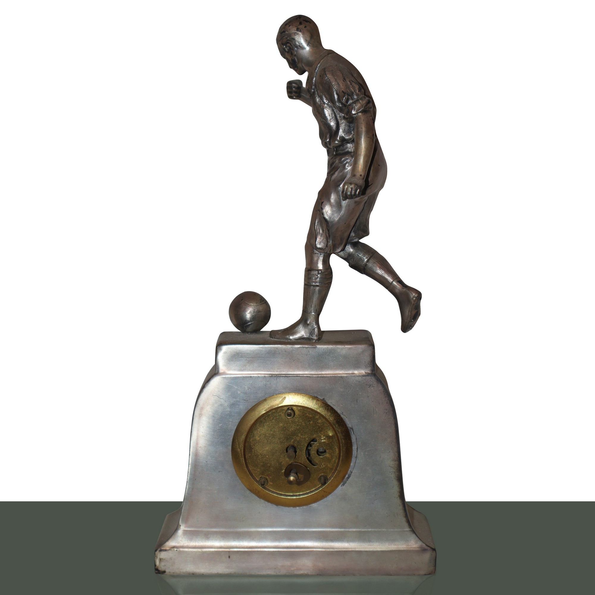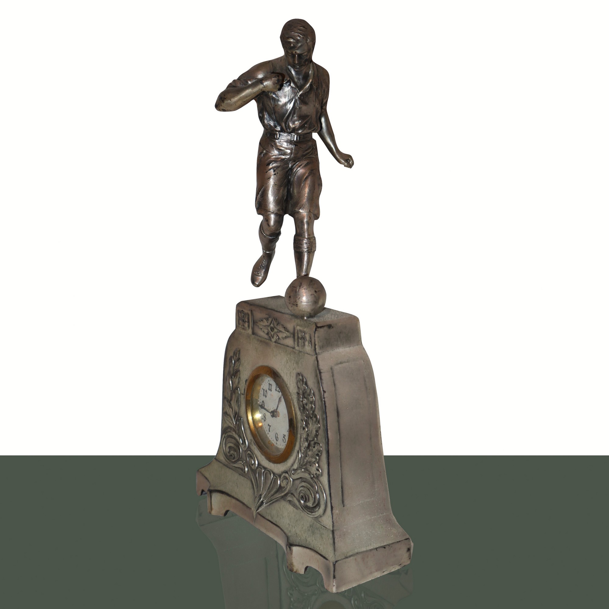 Orologio in metallo argentato con calciatore H cm 34, base cm 17x6