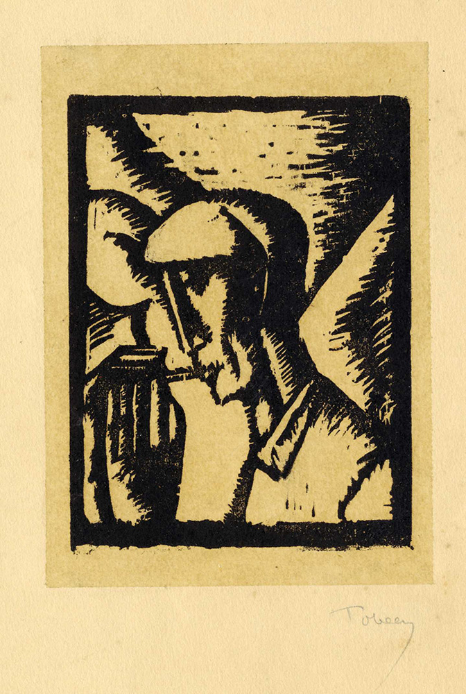 Bonnet Félix Elie [pseud. per Tobeen], Le fumeur basque. 1934. Xilografia. mm 120x87. Foglio: mm 270x173. Firmata a matita in basso a destra. SI AGGIUNGE: 2) Id., Untitled. Xilografia. mm 47x100x Foglio: mm 120x170. Siglata in lastra in basso a destra. (2)