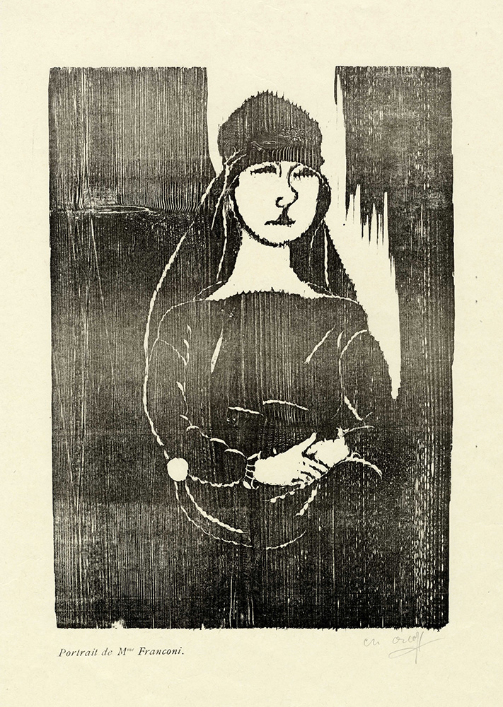 Chana Orloff, Portrait de Madame Franconi. 1919. Xilografia. mm 315x220. Foglio: mm 560x380. Firmata a matita in basso a destra e stampato il titolo in basso a sinistra. Tiratura a 100 esemplari, edizione D'Alignan di Parigi. (1)