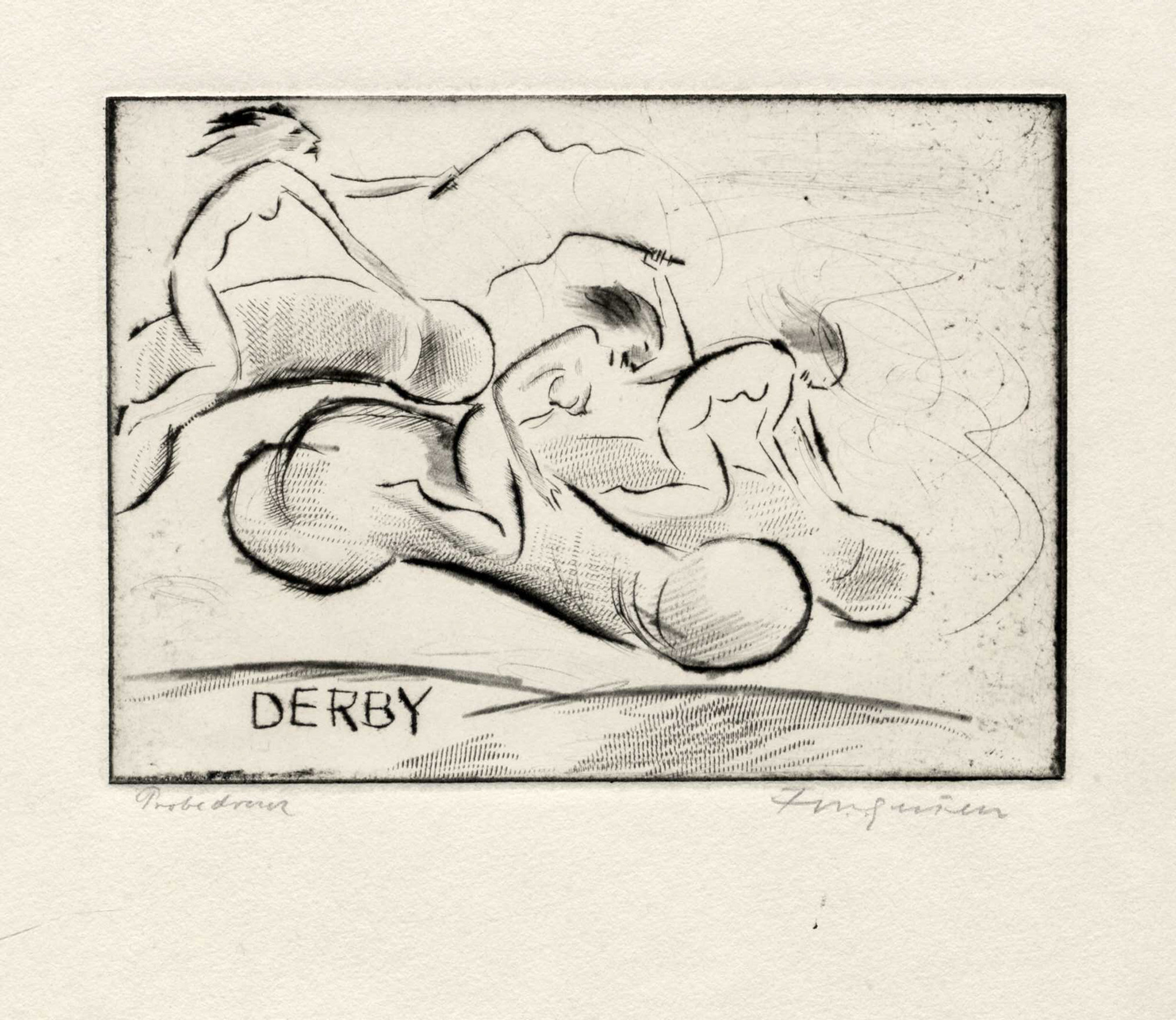 Michel Fingesten, Derby. Acquaforte. mm 100x140. Foglio: mm 294x224. Firma a matita in basso a destra e "Probedruck" in basso a sinistra. (1)
