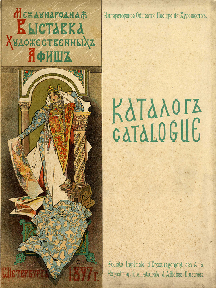 Autori vari, Société Impériale d’Encouragement des Arts. Exposition -Internationale D’Affiches Illustrées. 1897. Catalogo di 48 litografie (mm 336x255) e 1 indice di artisti vari, tra cui: Alphonse Mucha (3 litografie), Pierre Puvis de Chavannes, Jules Cheret, Giovanni Maria Mataloni. Edito da R. Golicke, St. Pietroburgo. Manca la copertina in bianco e nero, ma è presente quella a colori. Documento storico della prima esposizione universale avvenuta in Russia con oltre 700 manifesti, testimonianza che ci permette di capire quanto fosse apprezzata questa tipologia d'arte. Sono state stampate solo 1000 copie di questo catalogo. (1)