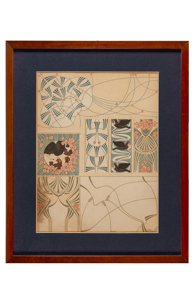 Anonimo liberty, Decorazioni per interno (azzurro, rosa, grigio e nero).