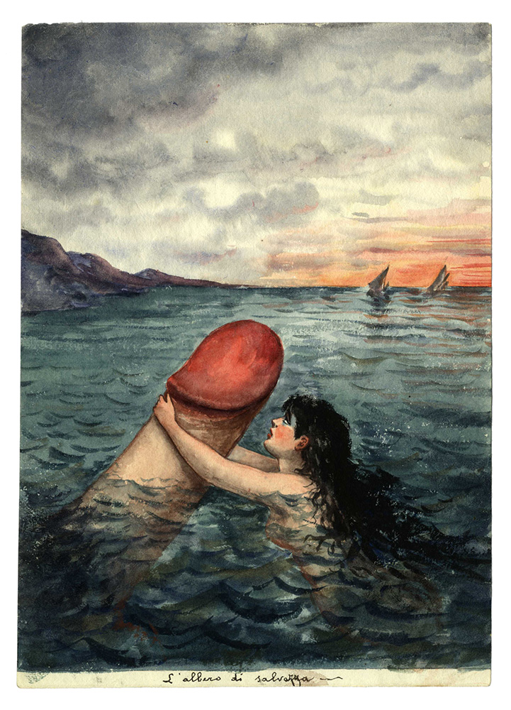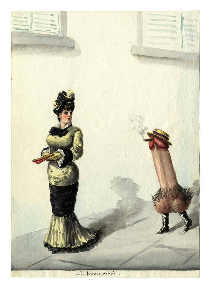 Anonimo del XX secolo, Lotto composto di 8 acquerelli, alcuni erotici. Acquerelli. Misure varie. (1)
