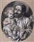 Giuseppe Bezzuoli [attribuito a], Paternità. 1818. Carboncino, matita e pastello bianco su carta tabacco. mm 408x333 (visibili). Firma e data iscritti in basso a destra e probabilmente apocrifi. Due timbri a secco "Macciò Bezzuoli Parri" e un artiglio d'aquila. (1)