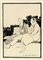 Marcello Dudovich, Chiacchiere sulla panchina. Inizio del XX secolo. Penna e inchiostro di china su carta. mm 340x250 (visibili). Firma in basso a destra. (1)
