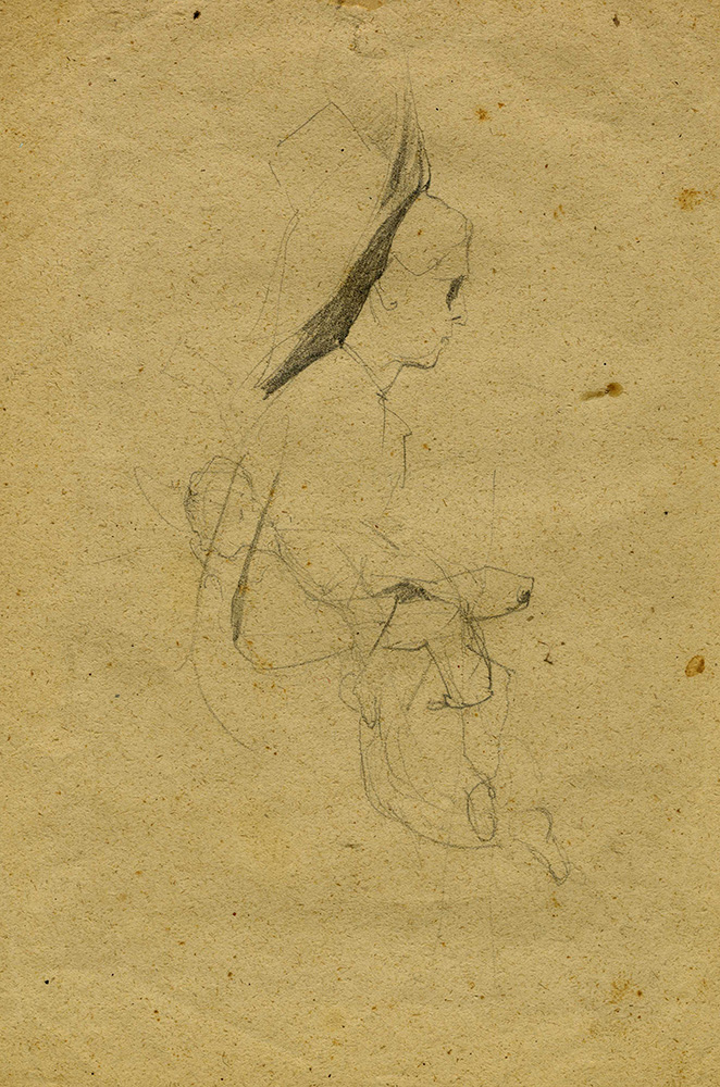 Egisto Ferroni, Ritratto di contadina e ritratto di signora. Disegno recto/verso.