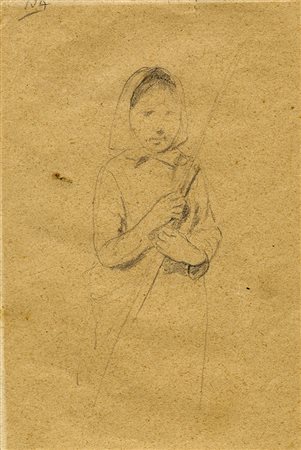 Egisto Ferroni, Ritratto di contadina e ritratto di signora. Disegno recto/verso. Matita su cartone. mm 255x170 cad. (visibili). (1)