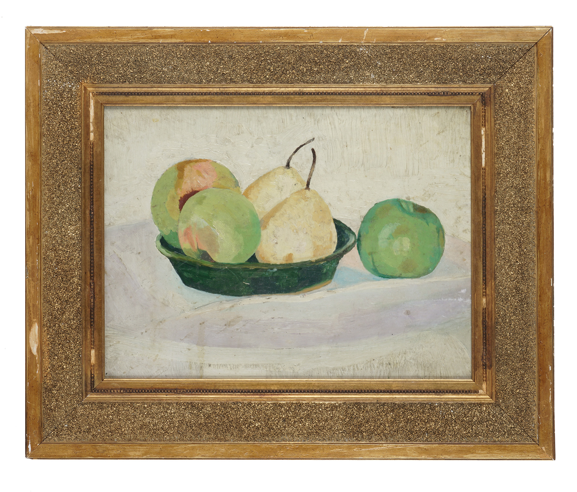 Walter Lazzaro, Natura morta. Ante 1937. Olio su tavola. cm 29x38. Provenienza: II Mostra d'Arte della Provincia di Littoria, Confederazione fascista dei professionisti e degli artisti. Sabaudia, 16-31 maggio XV, la cui targhetta è presente al verso. (1)