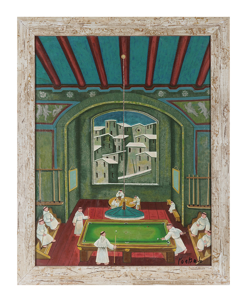 Norberto Proietti, Il biliardo. Olio su tela. cm 90x70. Firmato in basso a destra. (1)