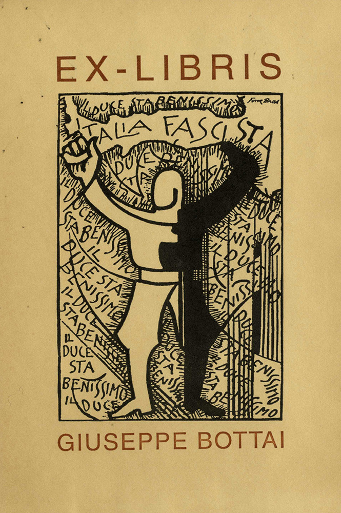 Anonimo futurista, Il Duce sta benissimo. Italia fascista. Ex-libris Giuseppe Bottai. Litografia. mm 189x125. SI AGGIUNGE: 2) Invito alla mostra nazionale di fotografia futurista. Litografia. mm 113x145. Invito alla mostra organizzata dal Sindacato Regionale Fascista Belle Arti Trieste e che prevedeva, come oratore, Filippo Tommaso Marinetti. (2)