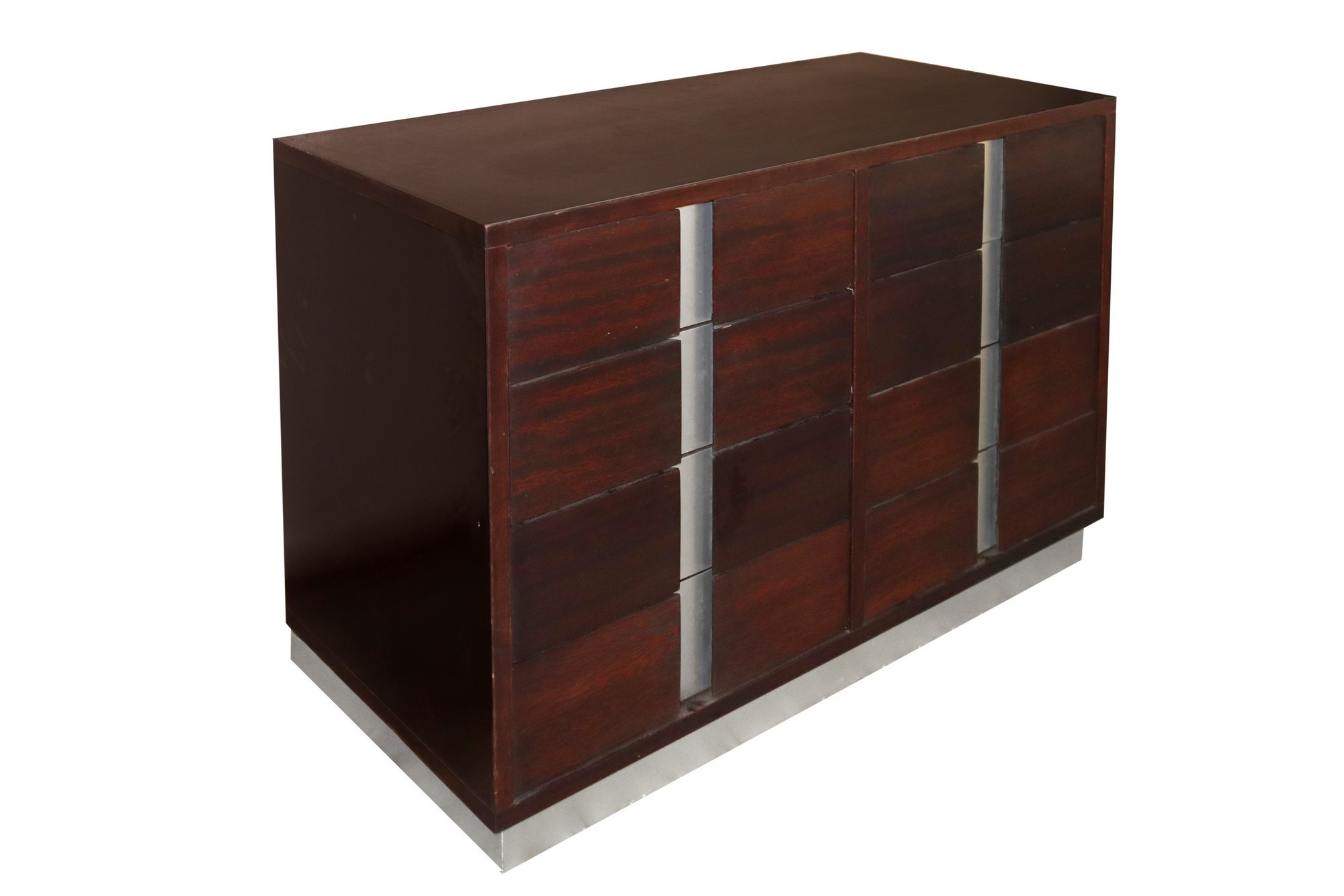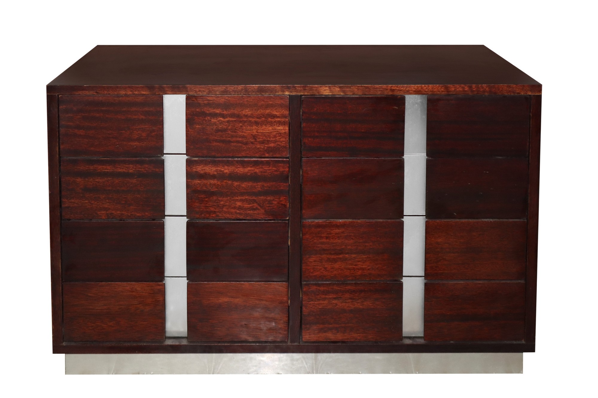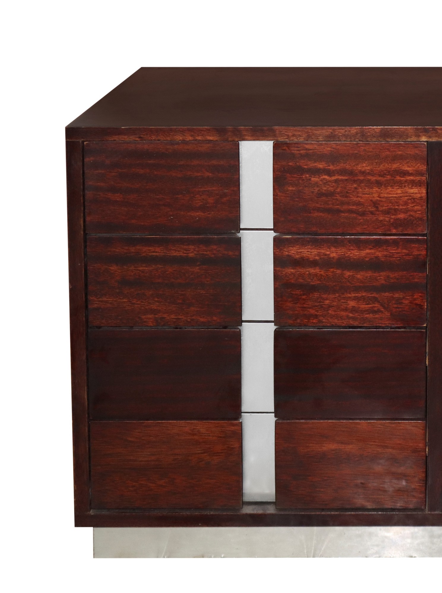 Ico Parisi per Mim - Cassettiera a otto cassetti h cm 74 x cm 95 x cm 45 Con struttura in multistrato rivestito in palissandro. Dettagli in alluminio satinato. Presenti segni di usoCon struttura in multistrato rivestito in palissandro. Dettagli in alluminio satinato. Presenti segni di uso