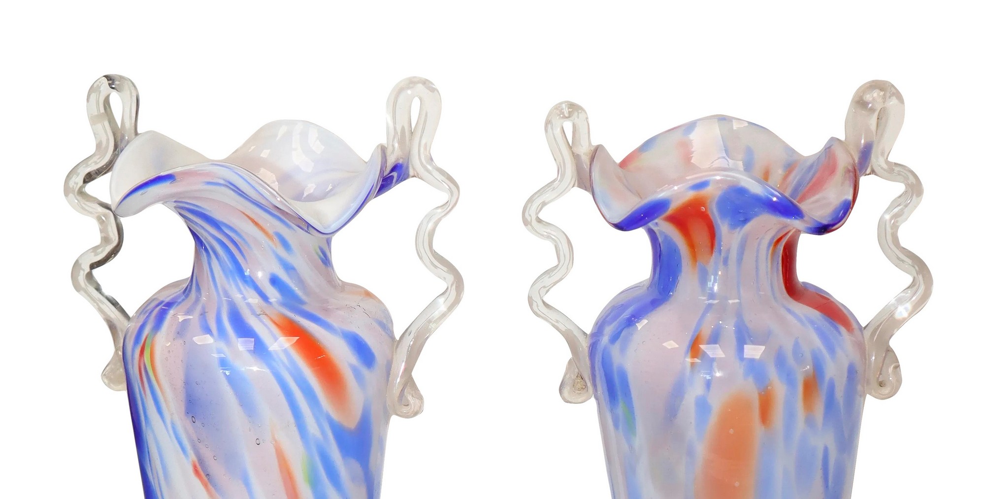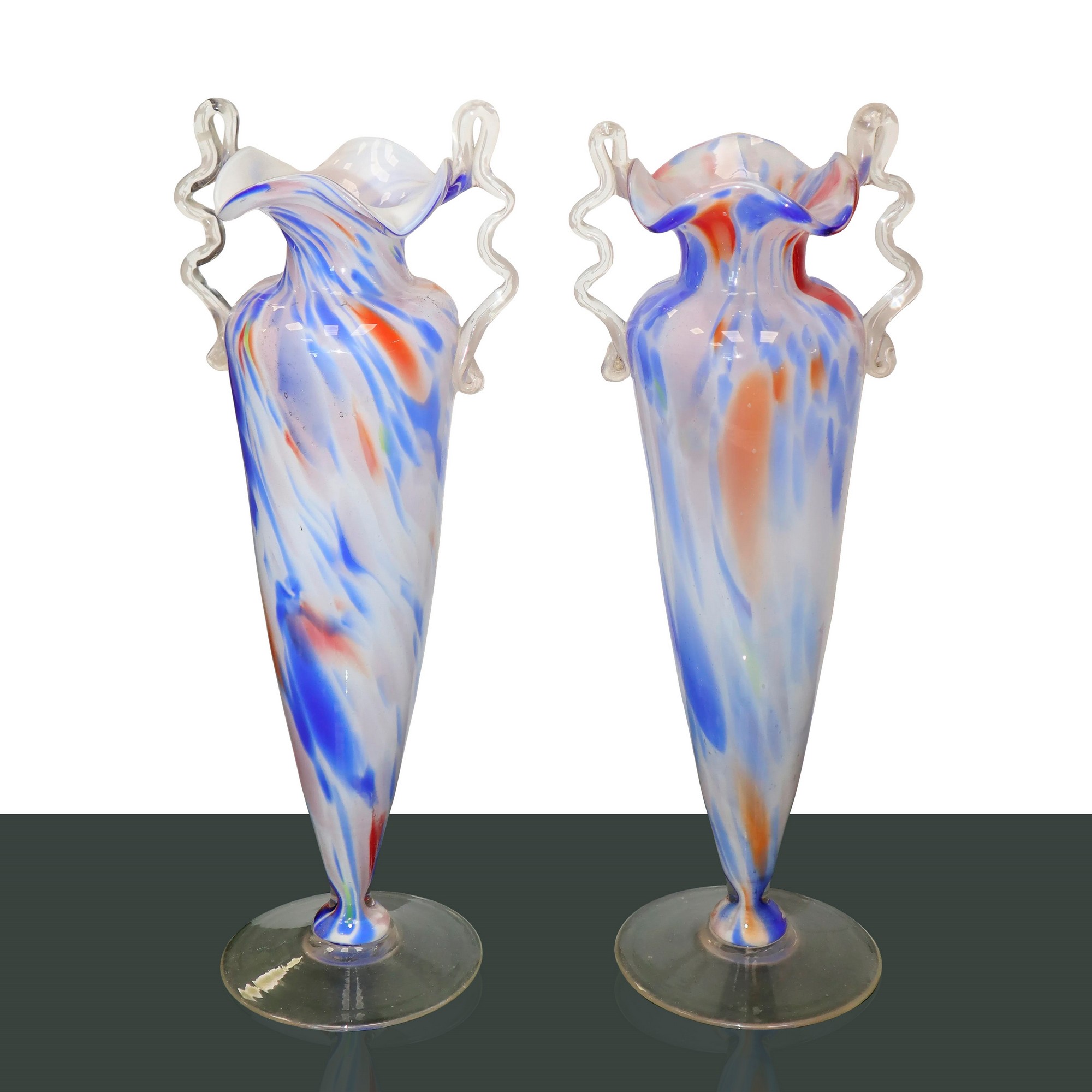 Fratelli Toso - Coppia vasi in vetro di Murano nei toni del blu e dell'arancione h cm 36 Fratelli TosoFratelli Toso