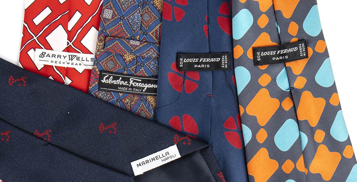 Lotto di 5 cravatte in seta anni 70/90 (Feraud, Marinella, Ferragamo, ecc) Grado di condizione generale B