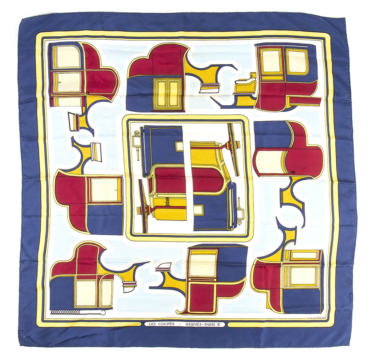 HermesFoulardFoulard Hermes in seta anni 70 "Les Coupes" by F. de la Perriere, grado di condizione generale B