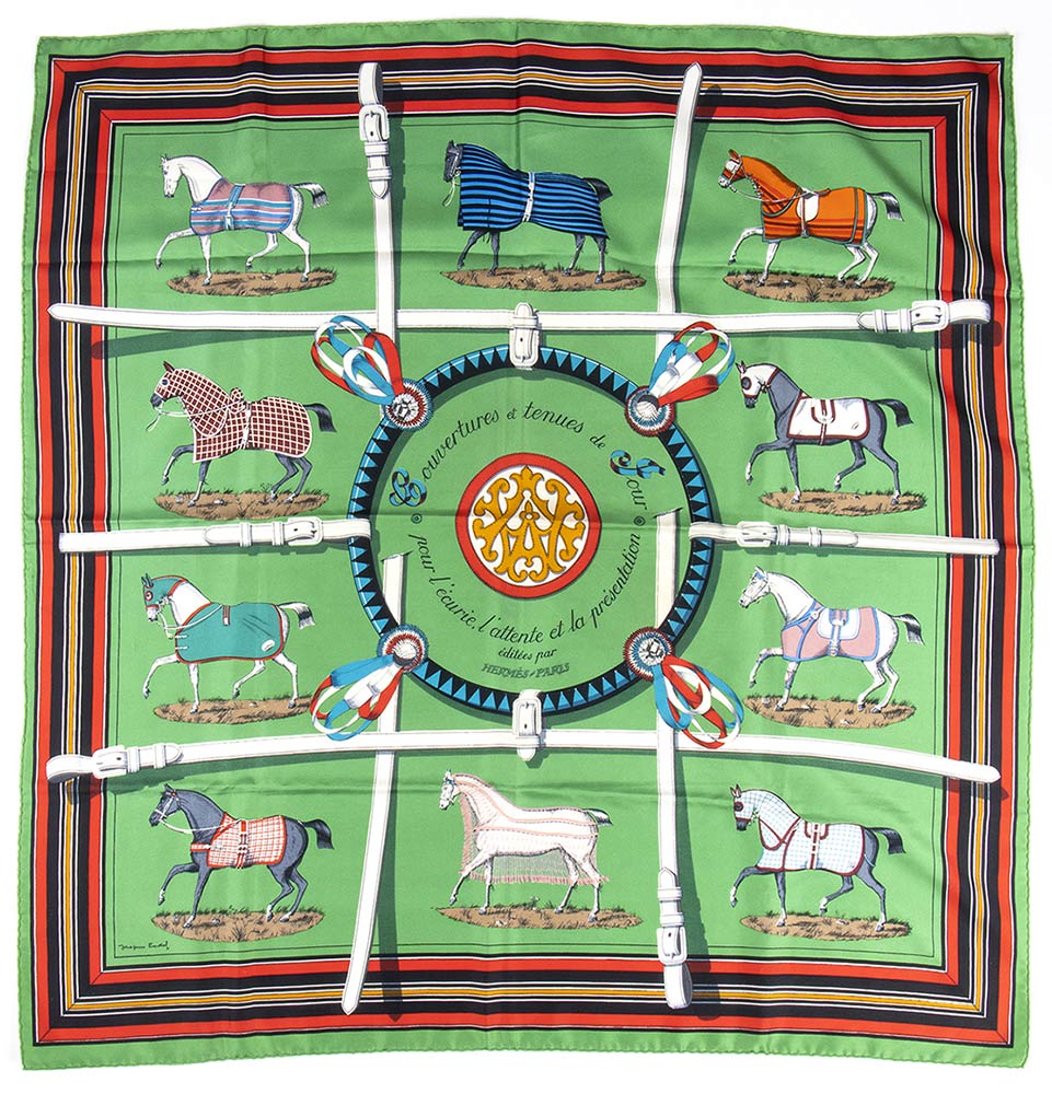 HermesFoulardFoulard in seta  Hermes fine anni 70/inizio anni 80  "Couvertures et Tenues de Jour" by Jacques Eudel, grado di condizione generale B