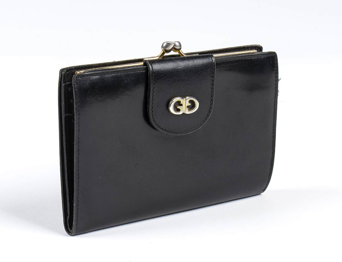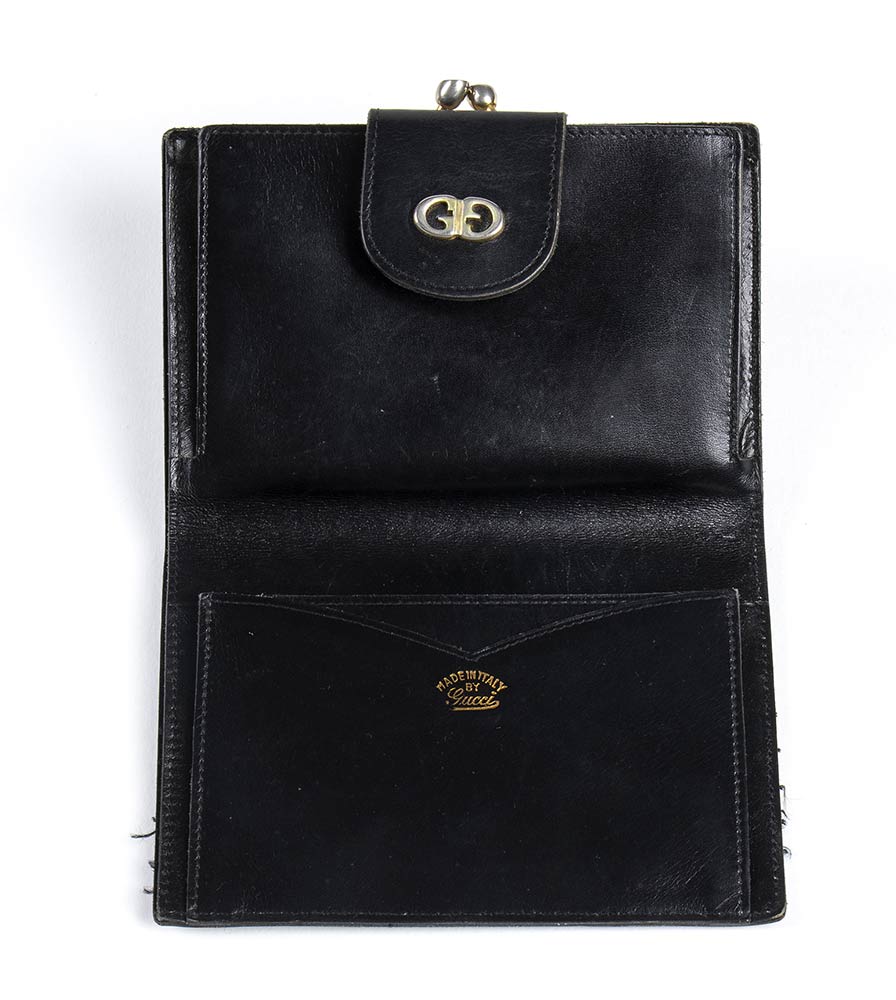 Gucci Portafoglio Gucci portafoglio anni 70 in pelle nera, grado di condizione generale C (segni di utilizzo)