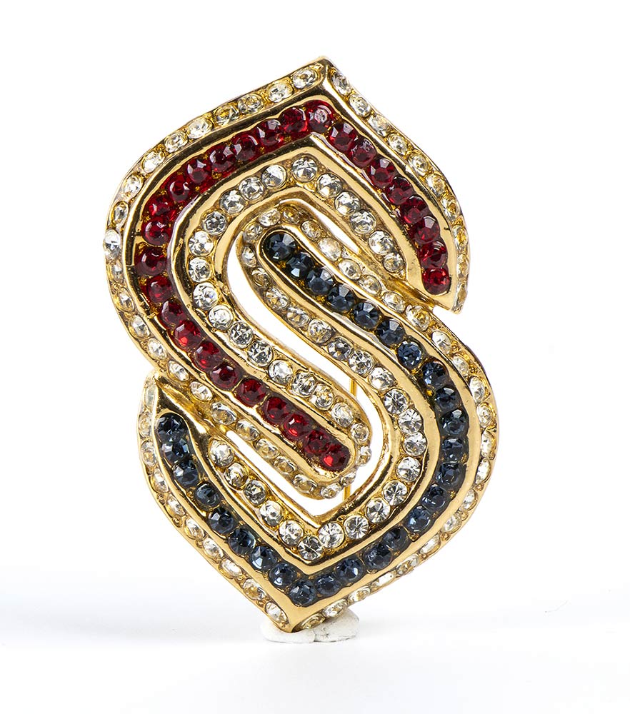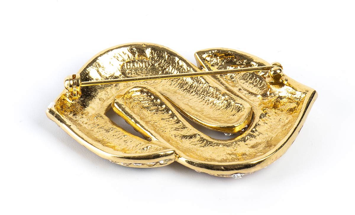 CascioSpilla Spilla Bijoux Cascio anni 70 in metallo dorato e strass, grado di condizione generale B