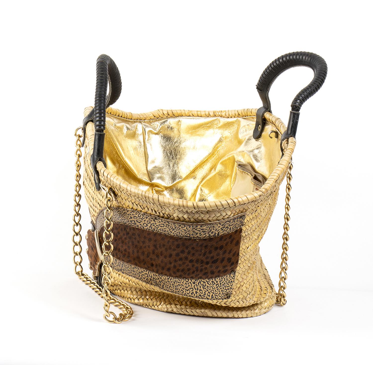 Enzo of RomaMaxi borsa in midollinoEnzo of Roma Maxi borsa in midollino, dettagli in pelle, e metallo, grado di condizione generale C (segni di utilizzo, manici neri aggiunti in seguito)