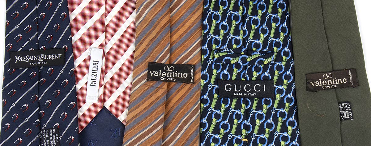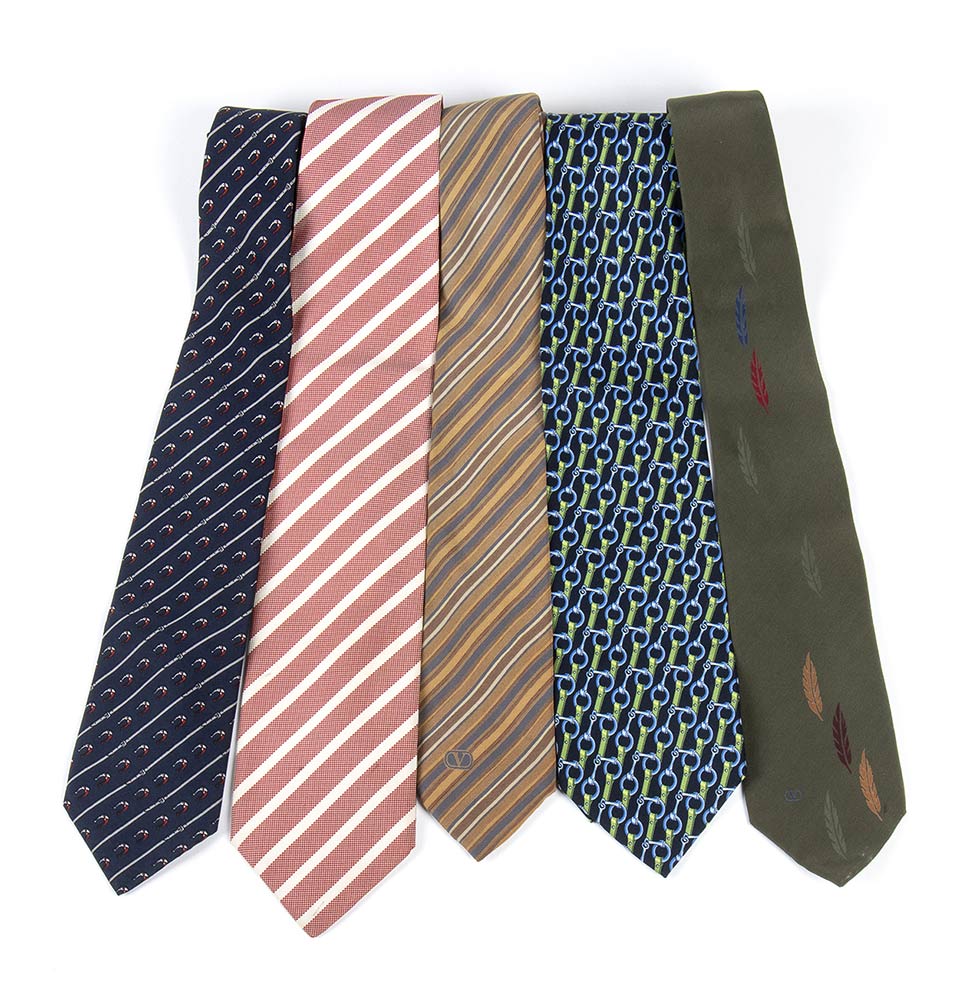 Valentino, Zileri, Gucci, Saint laurentCravatteLotto di 5 cravatte in seta anni 90: Valentino, Zileri, Gucci, Saint Laurent, grado di condizione generale B