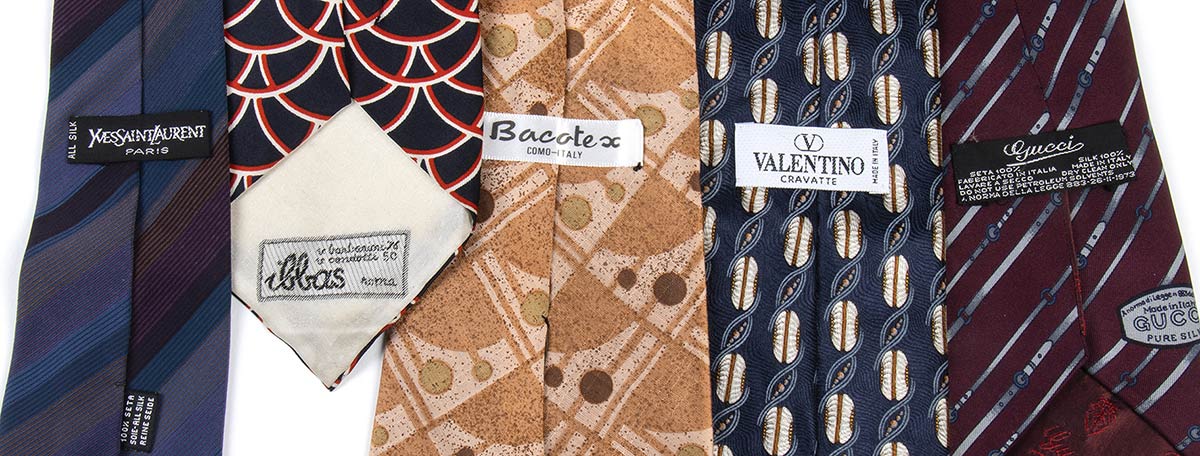 Bacatex, Valentino, Gucci, YSL, IbasLotto di 5 cravatte in seta anni 90: Valentino, Gucci, Saint Laurent, grado di condizione generale B