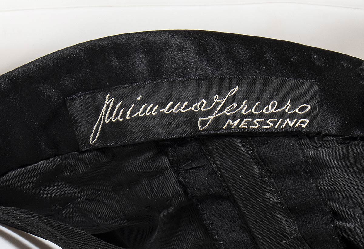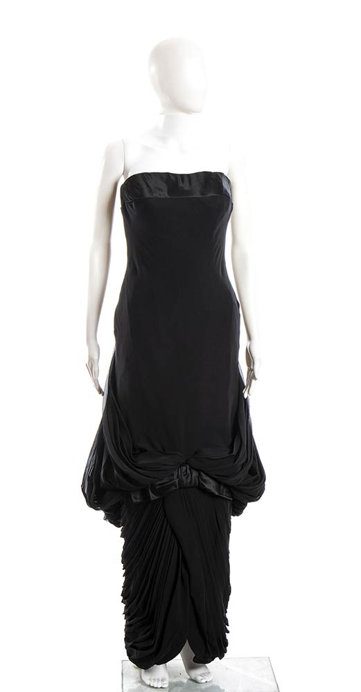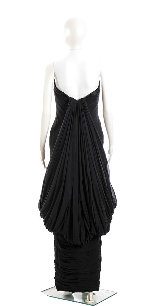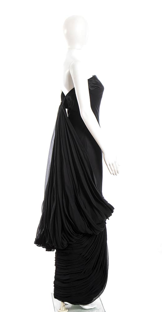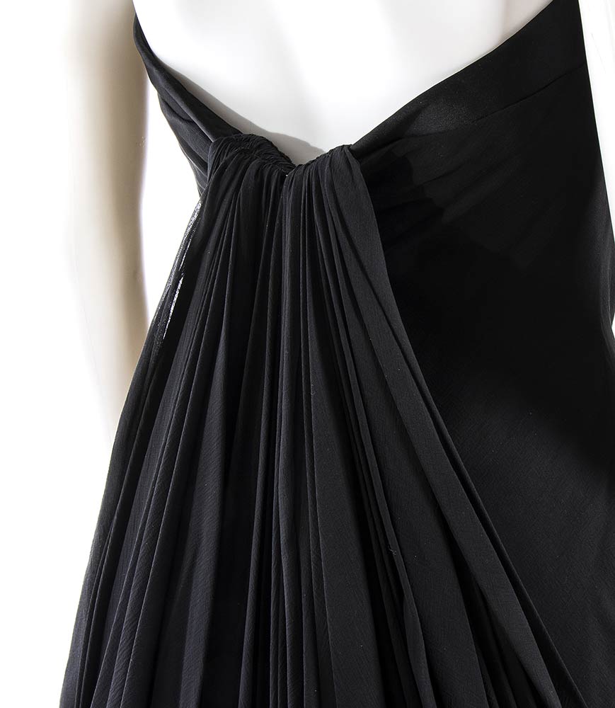 Mimma Ferraroabito Abito da sera Mimma Ferraro anno 1960 (copia di un modello Jean Dessès del 1960) in chiffon nero, dettagli in raso nero, grado di condizione generale B