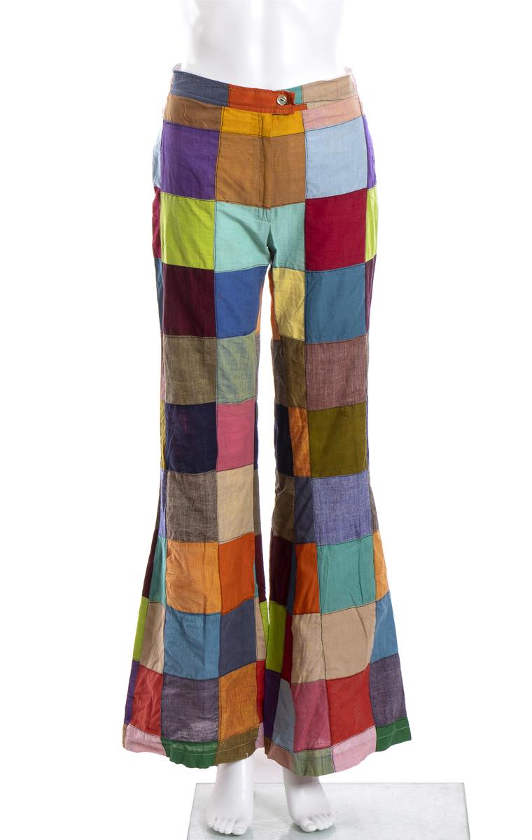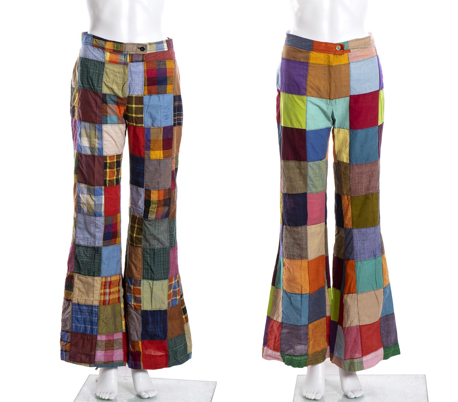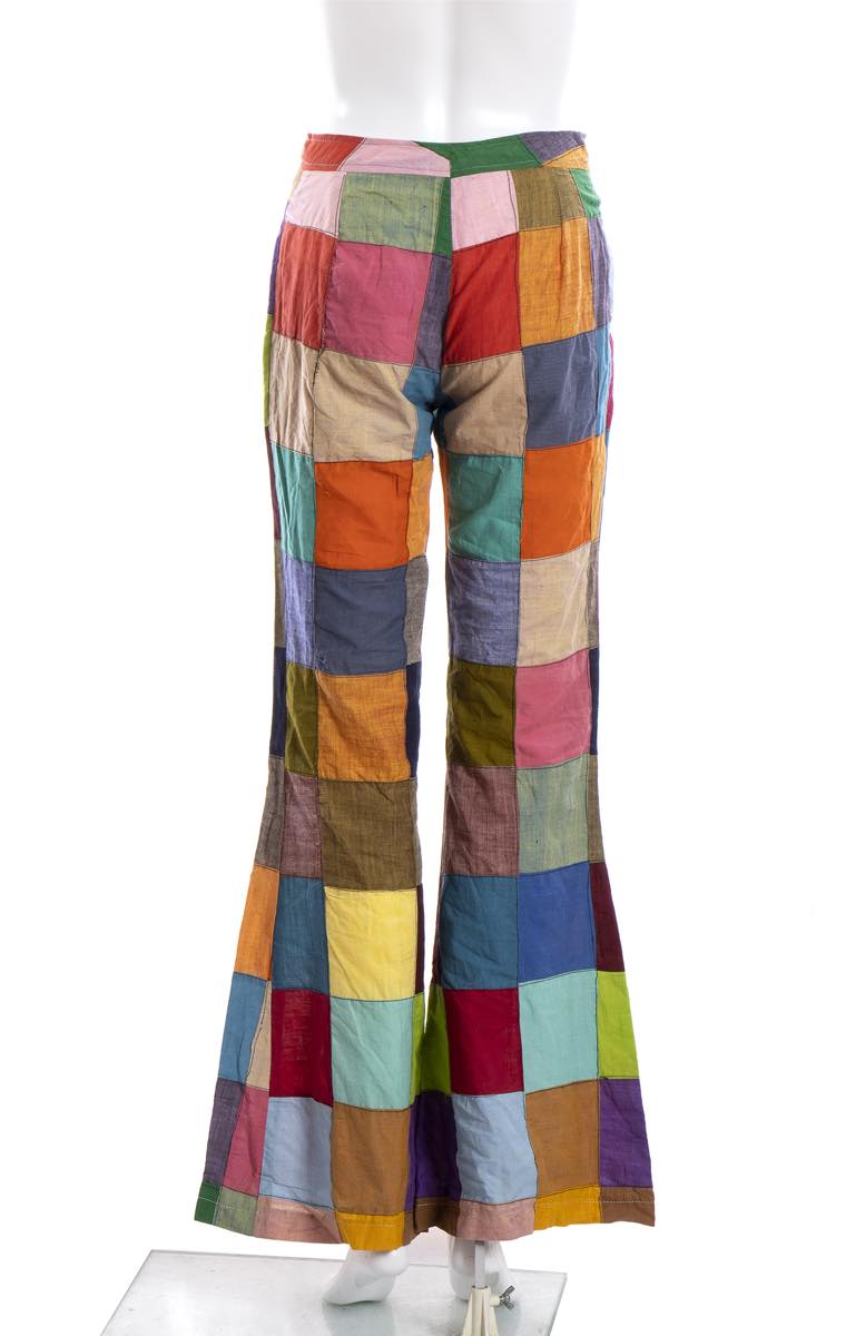pantaloni anni '70pantaloni Coppia di pantaloni anni 70 in cotone lavorazione patchwork, grado di condizione generale B