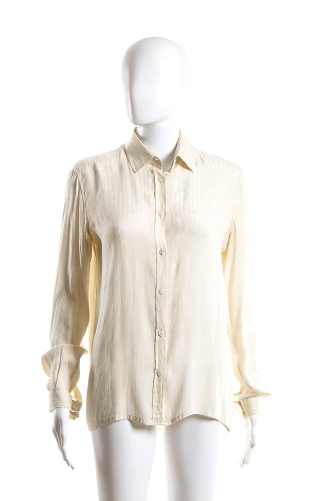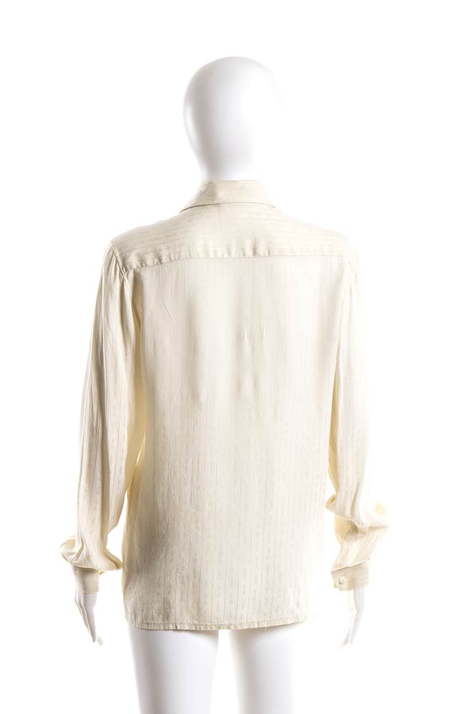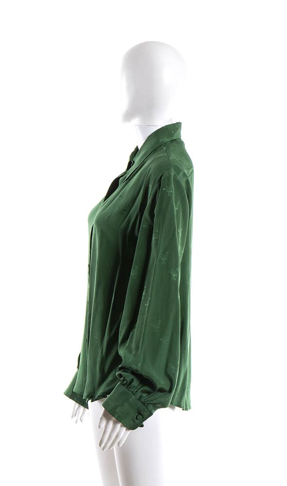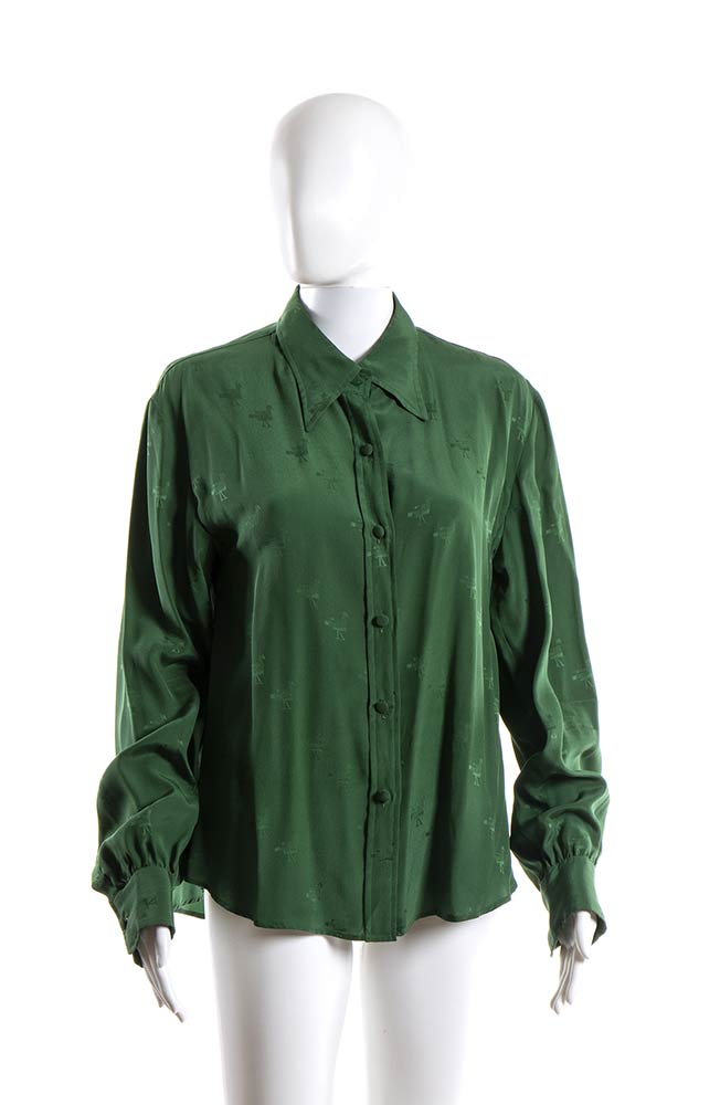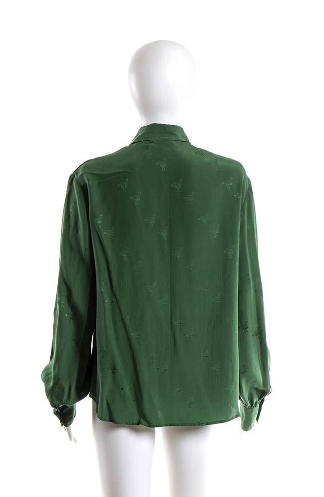 Camicie Lotto di 2 camicie Gucci in seta anni 70, bianca operata con motivo morsetto, verde operata con motivo di uccello stilizzato, grado di condizione generale C (segni di utilizzo)