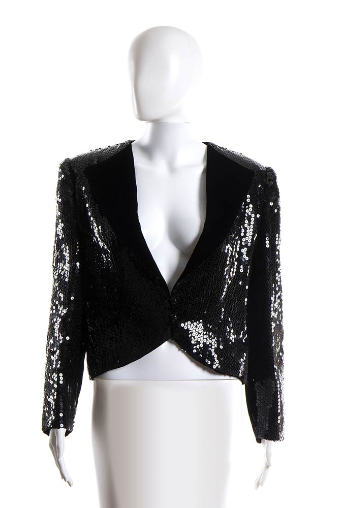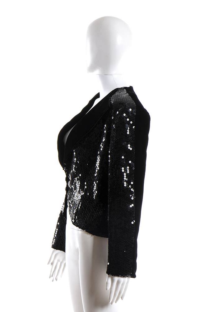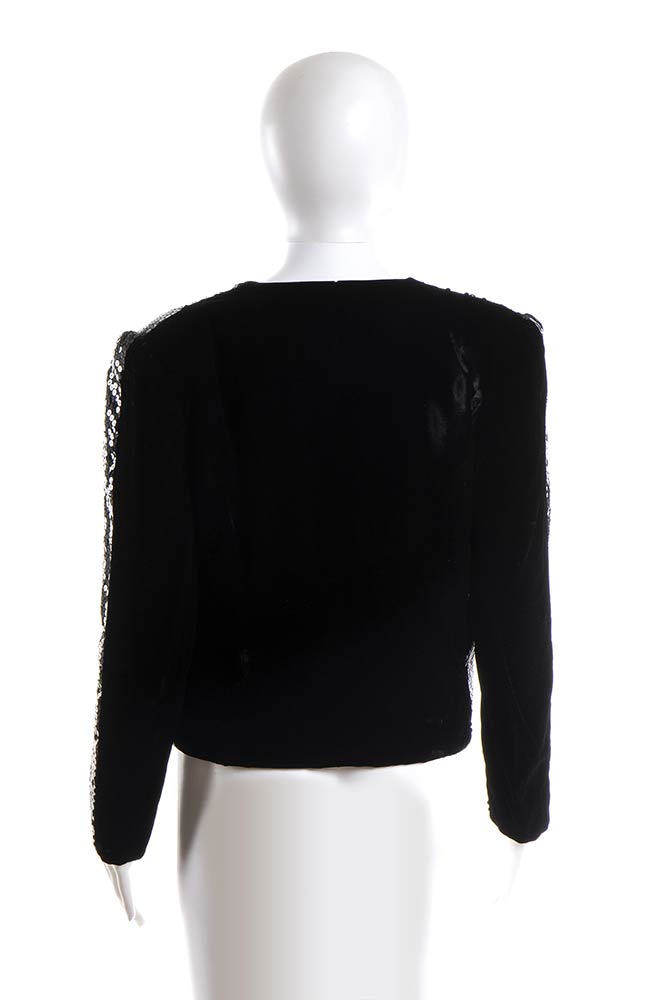 Valentino BoutiquegiacchinoGiacchino Valentino Boutique fine anni 80 in velluto nero e paillettes nere, grado di condizione generale B/C (segni di utilizzo)