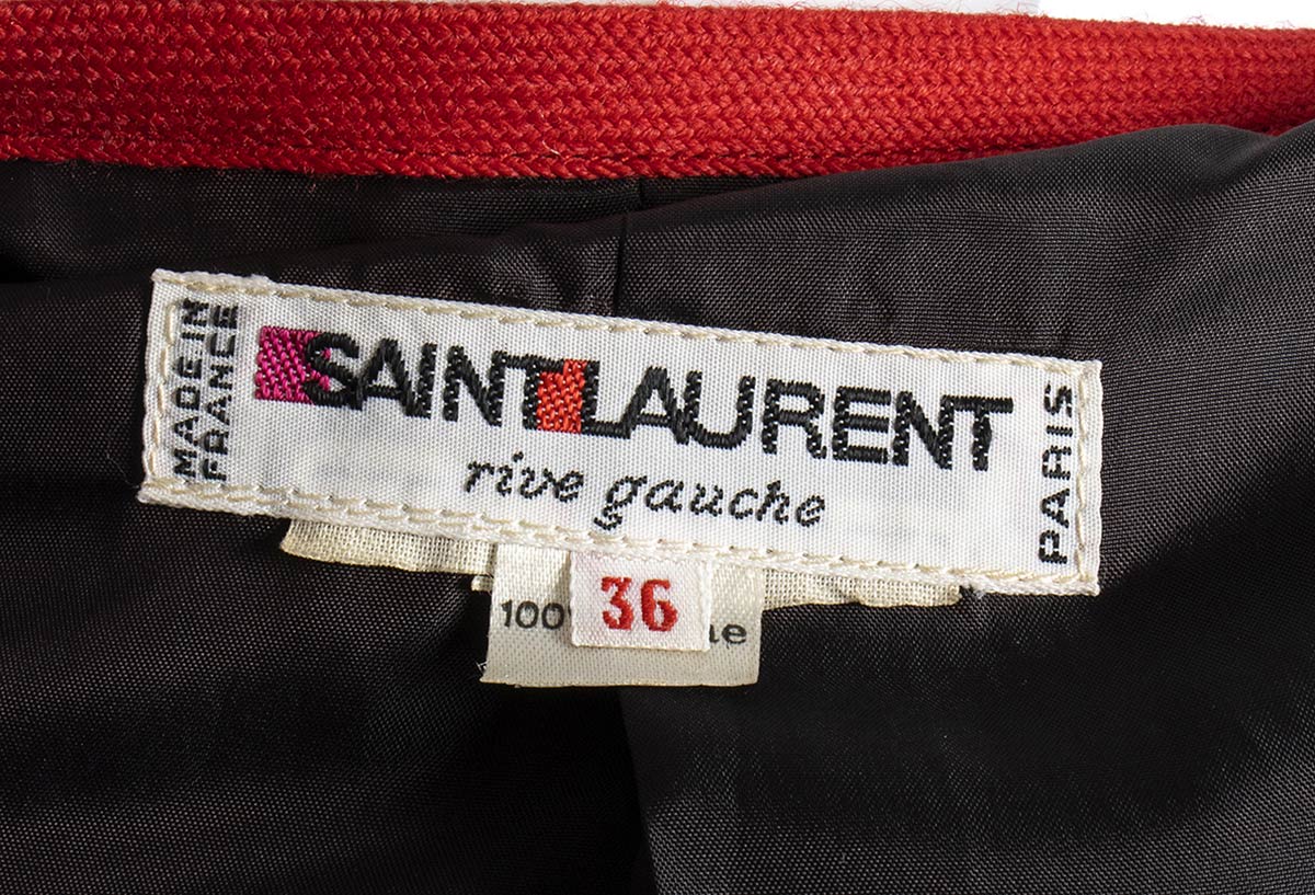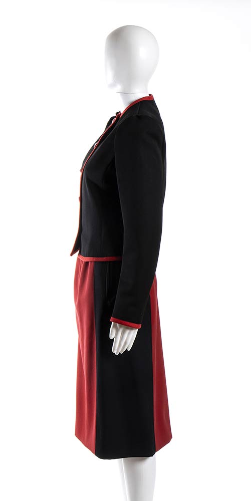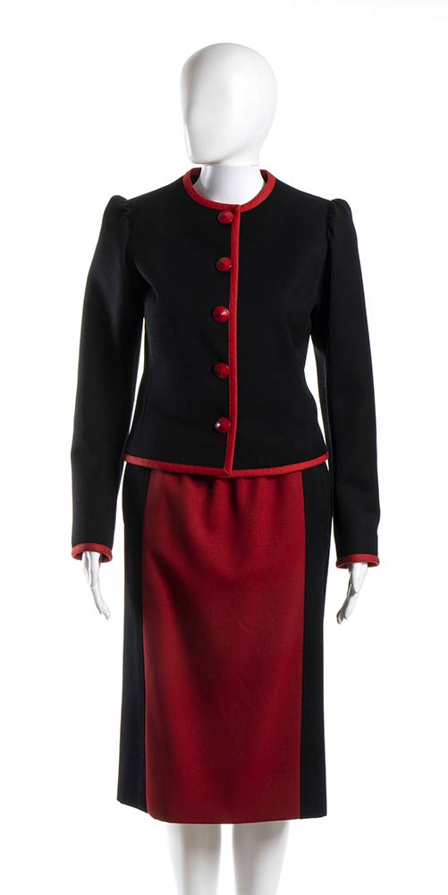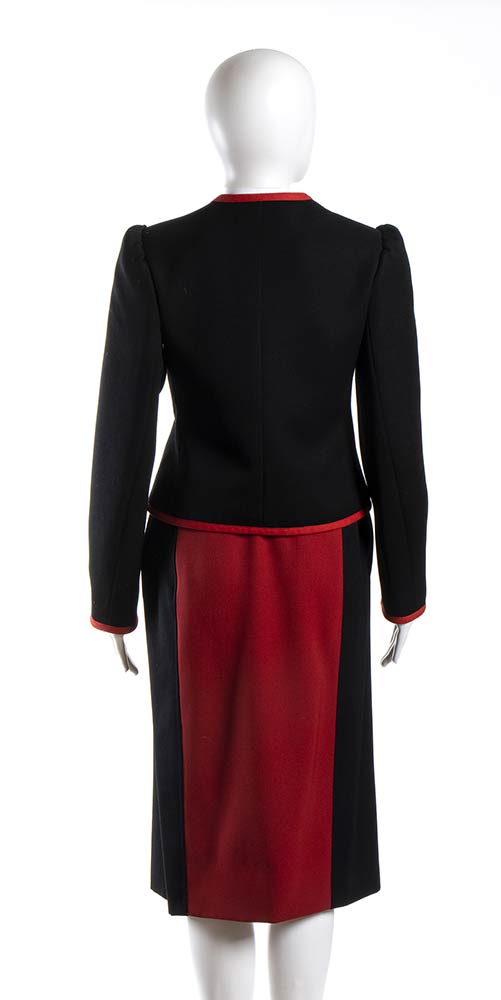 Saint Laurentgiacca e gonna Completo (giacca e gonna) Saint Laurent primavera estate 1980 in lana rossa e nera, grado di condizione generale B